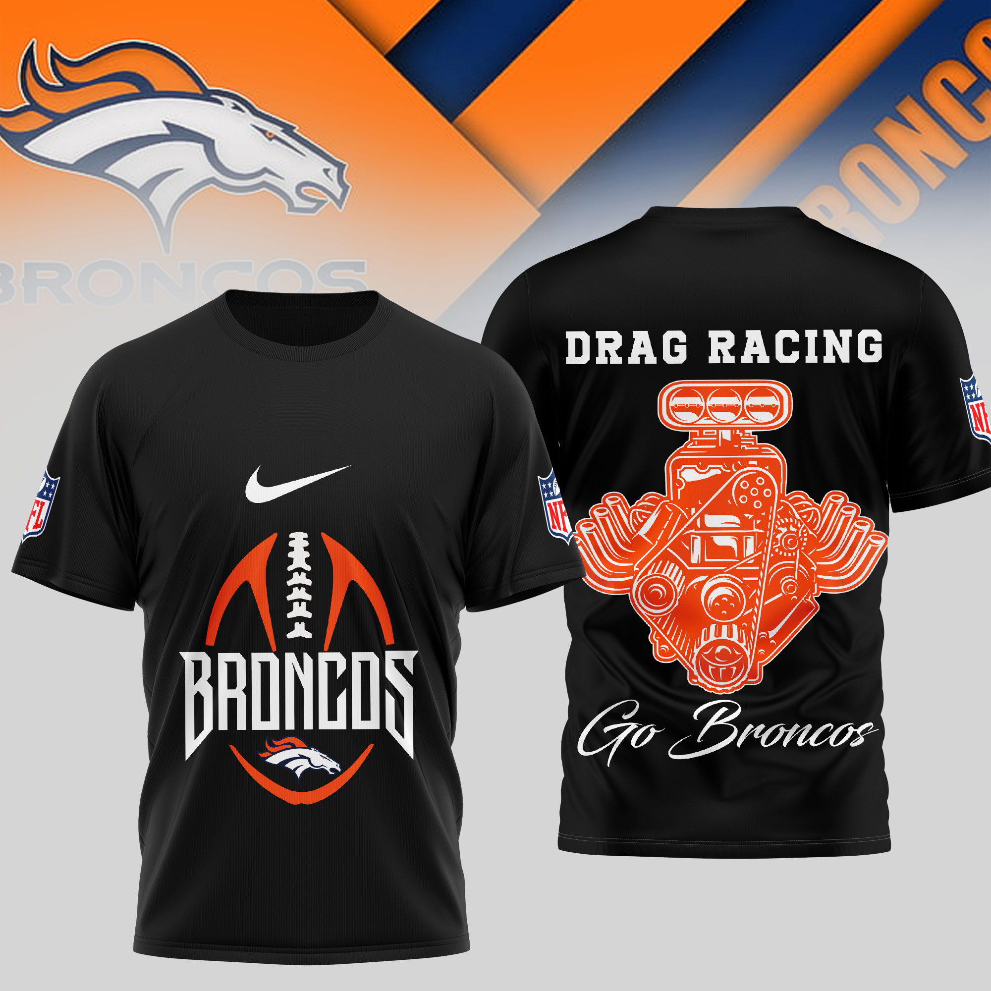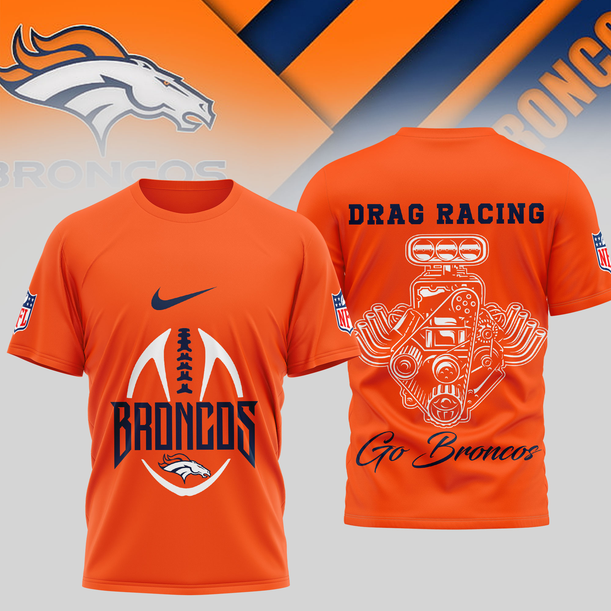 Denver Broncos | Premium NFL Drag Racing 3D Shirt