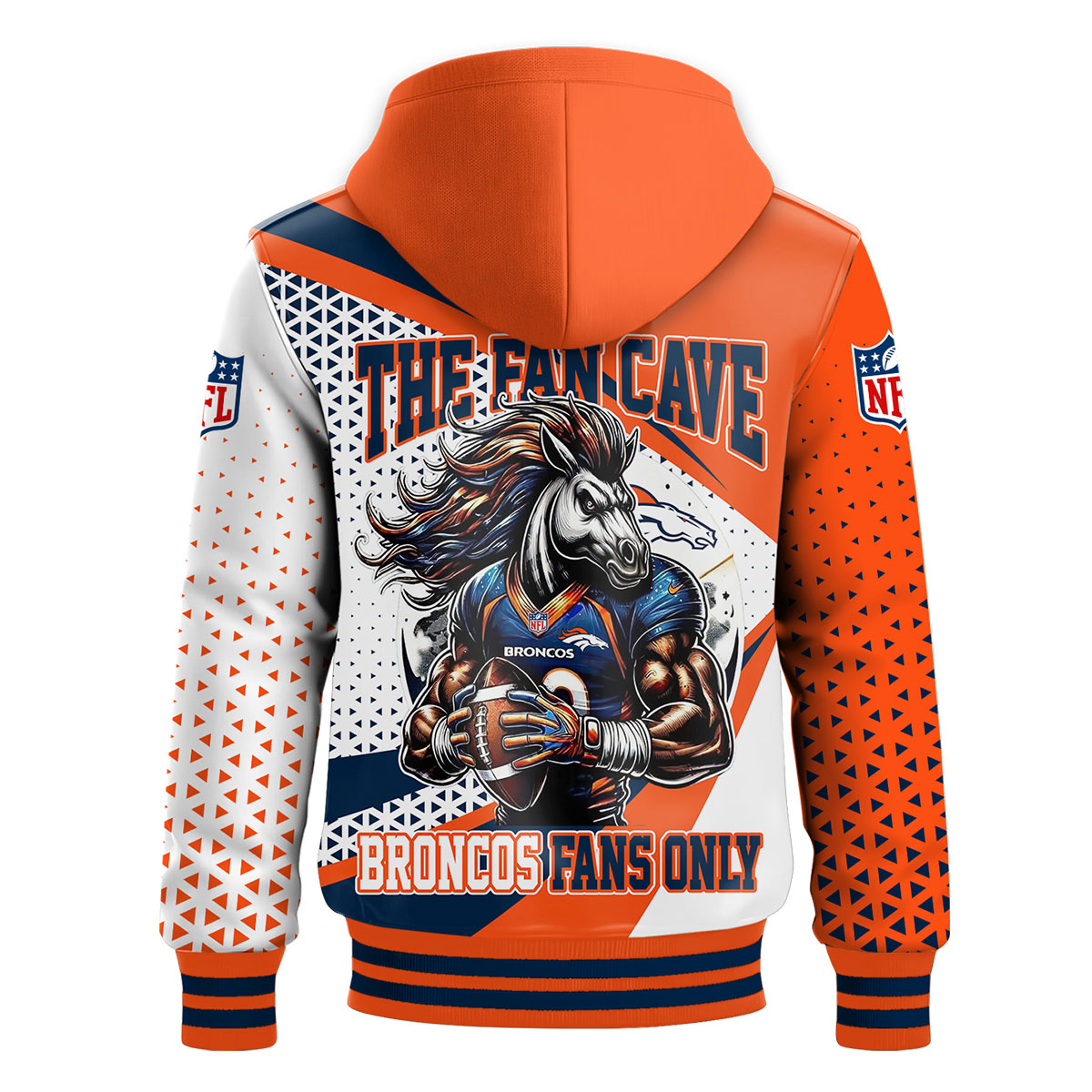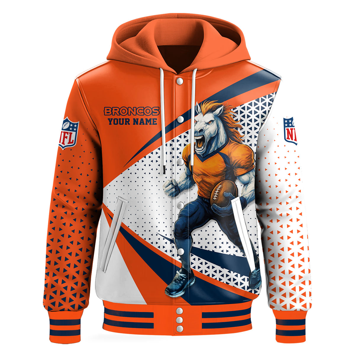 Categories: Denver Broncos, NFL, Premium NFL Fan Cave Hooded Baseball Jacket