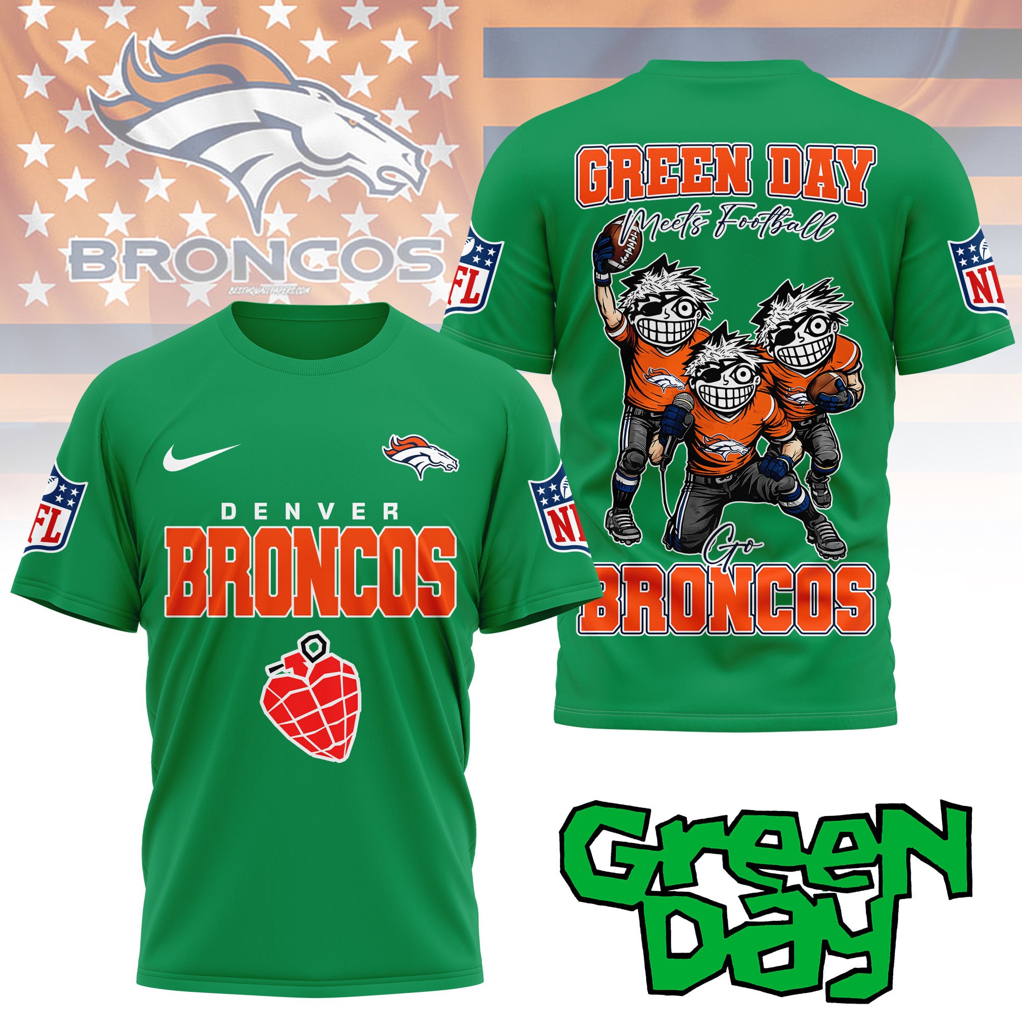 Denver Broncos | Premium NFL Green Day Fan 3D Shirt NY