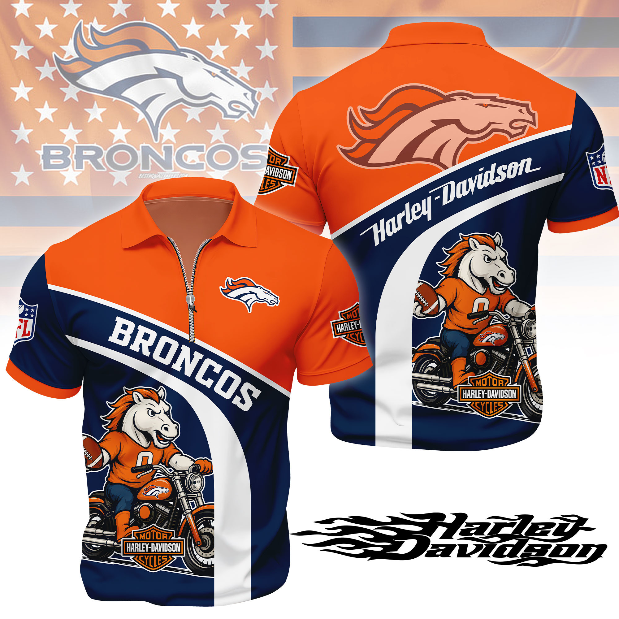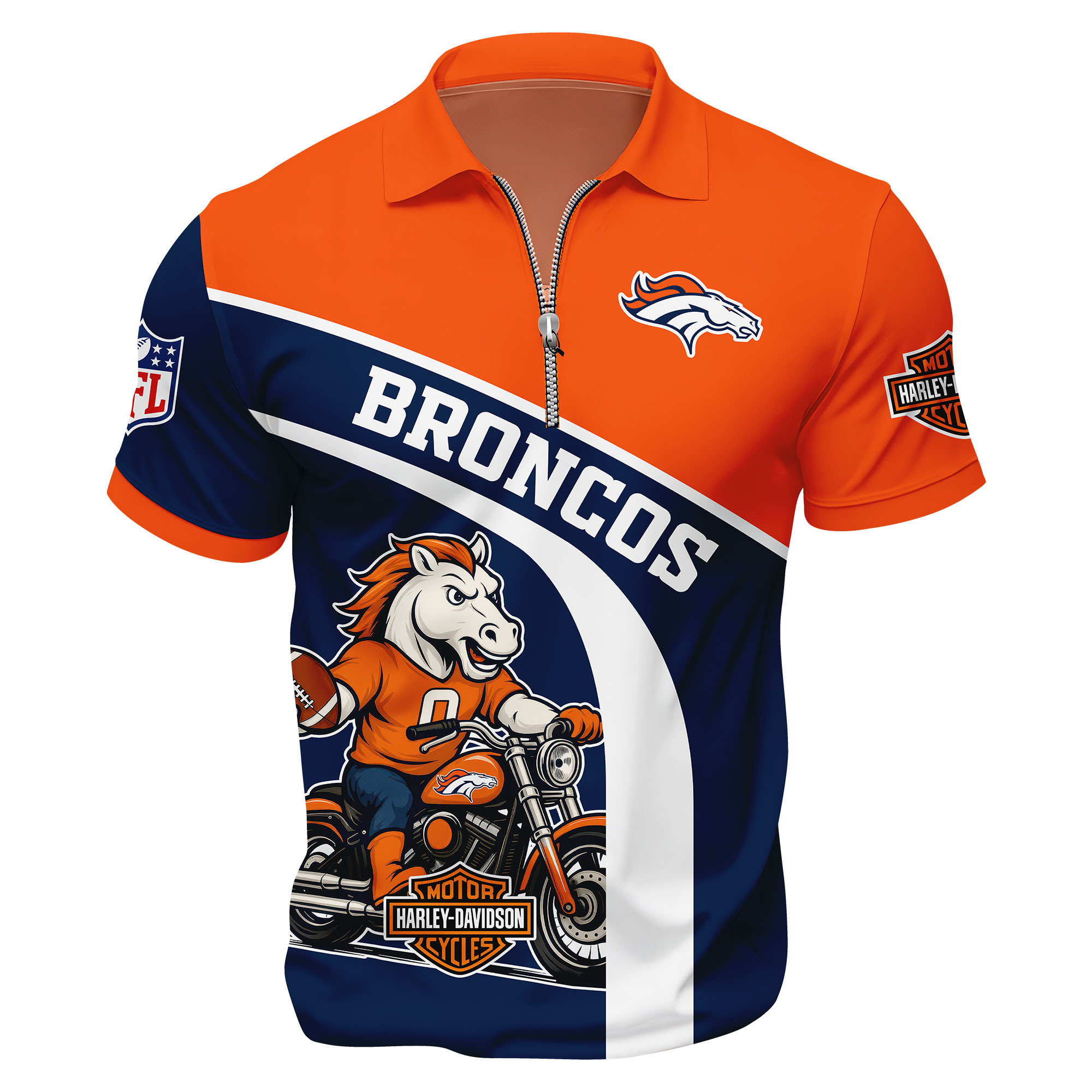 Denver Broncos | Premium NFL Harley-Davidson Polo With Zipper Shirt