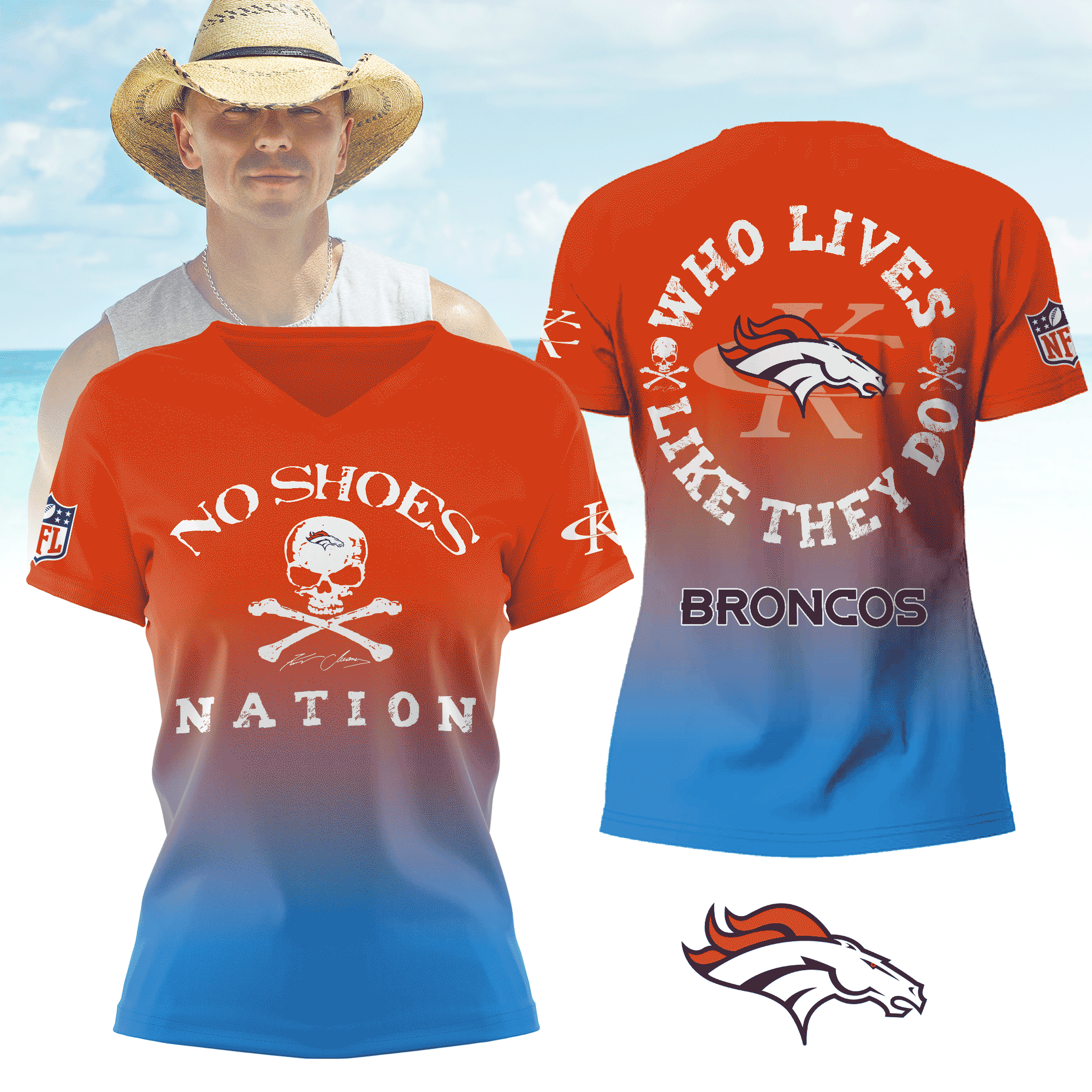 - This item: Denver Broncos | Premium NFL Kenny Chesney Who Lives Like They Do Shirt Price range: $27.95 through $47.95