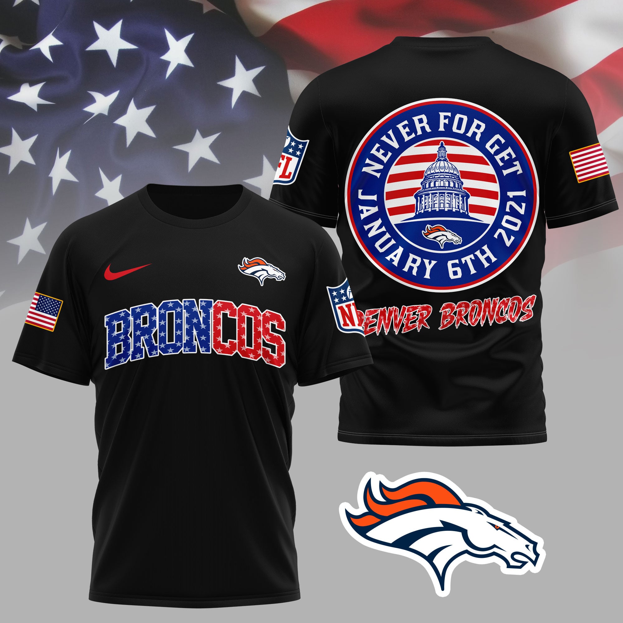 Denver Broncos | Premium NFL Never Forget January 6th 3D Shirt