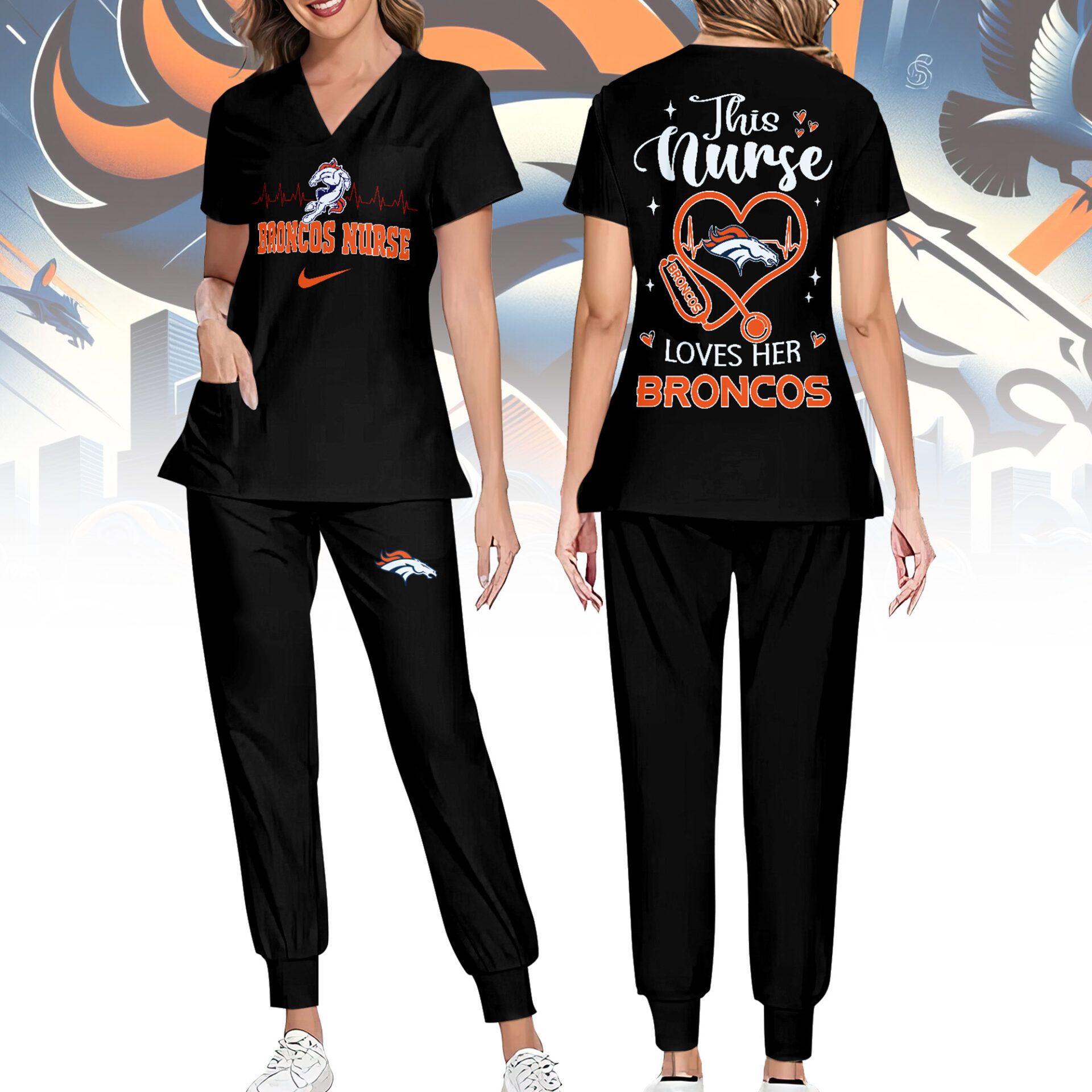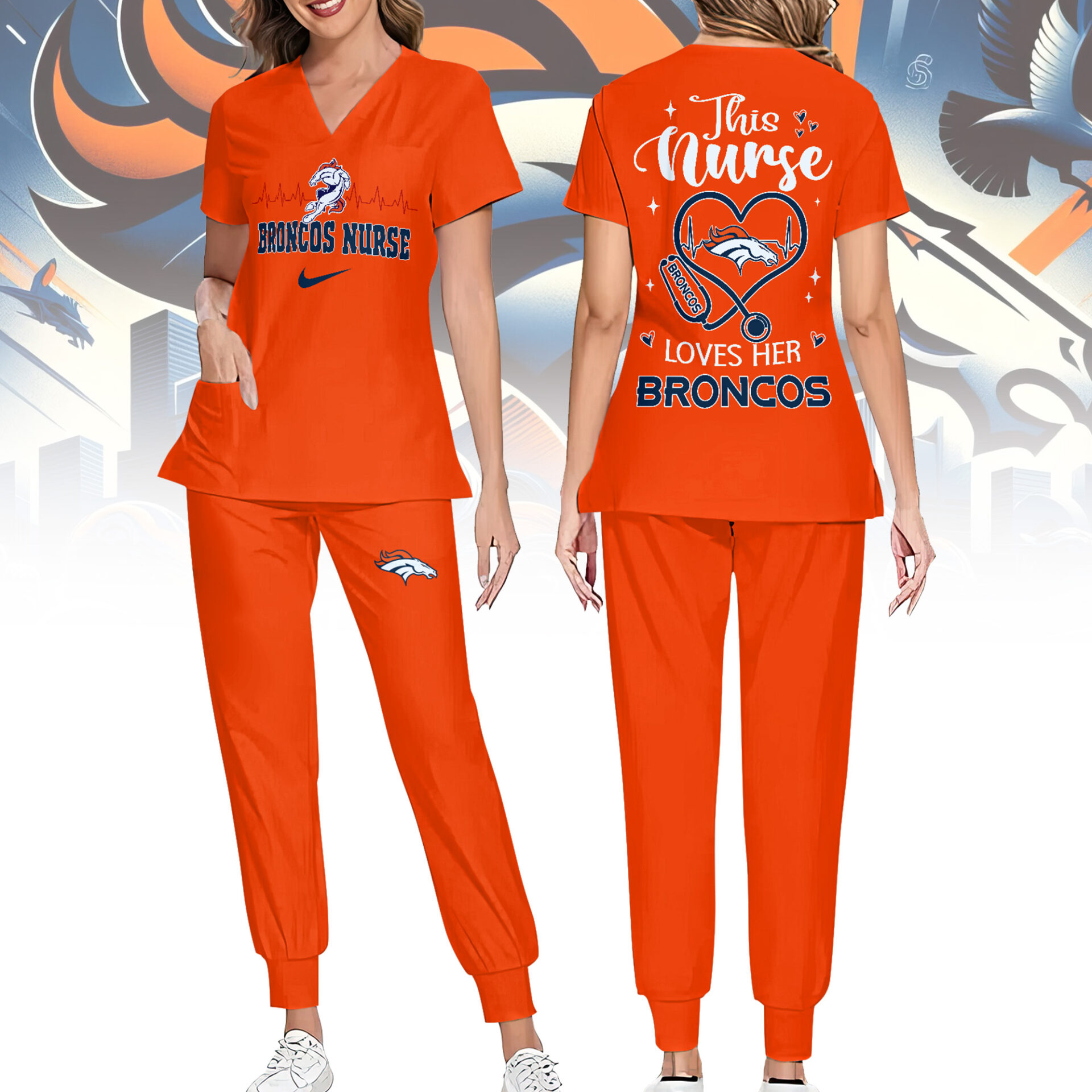 Denver Broncos | Premium NFL Nurse Appreciation Stretch V-Neck Scrub Top And Jogger Pant