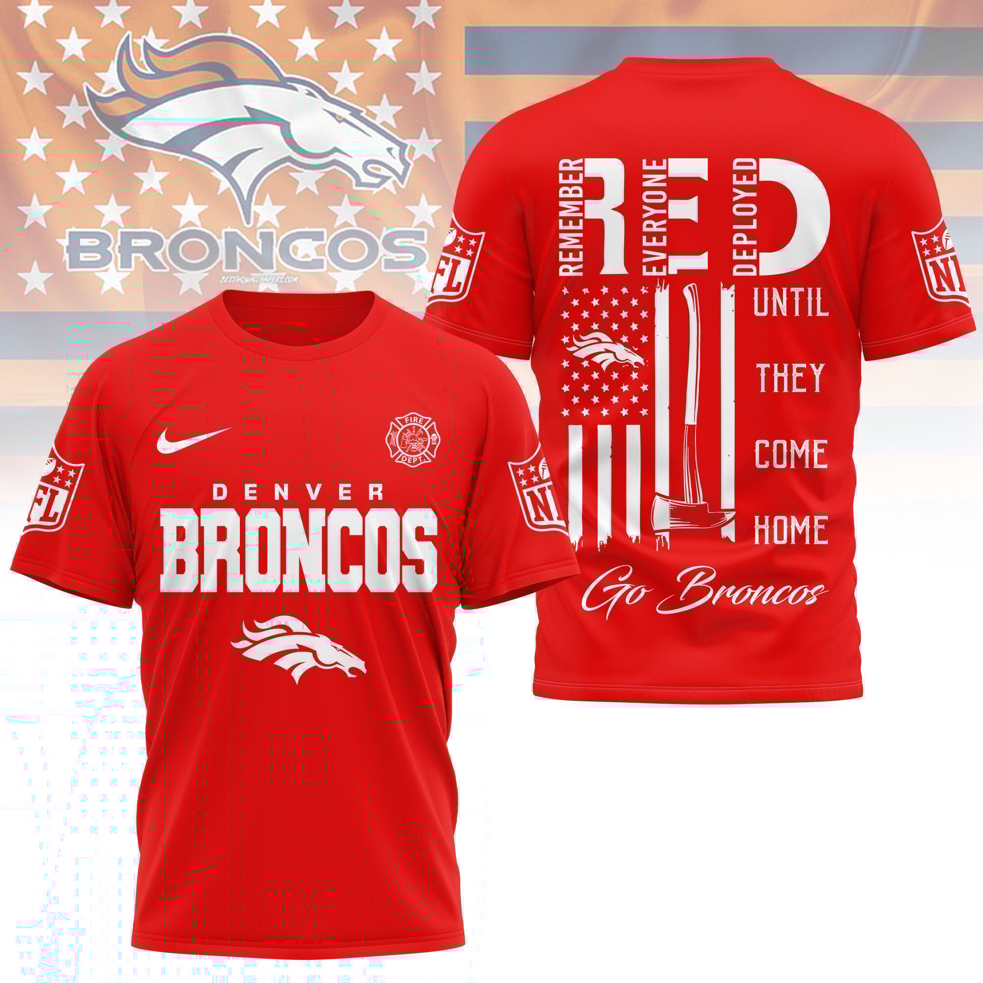 Denver Broncos | Premium NFL Red Friday Firefighter 3D Shirt