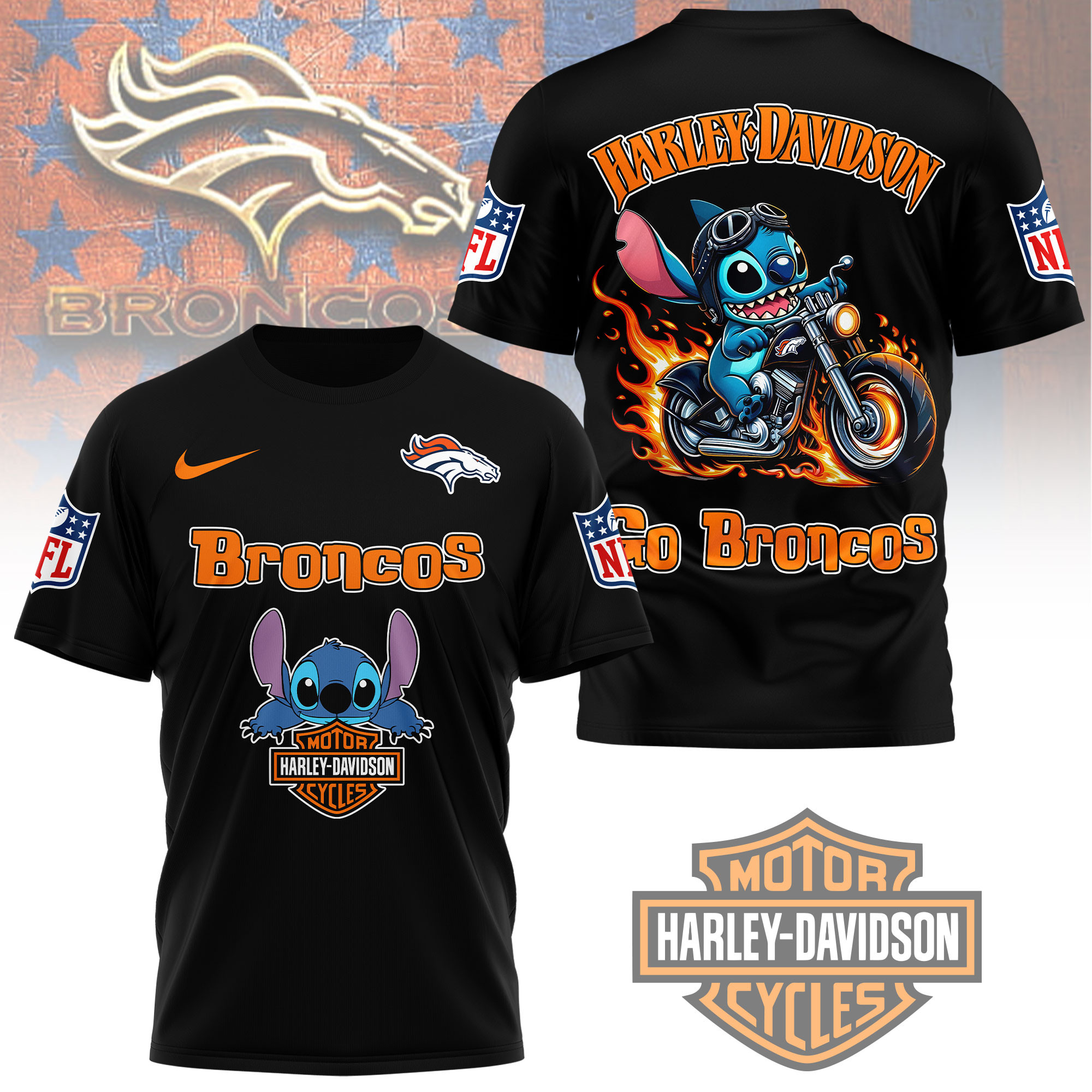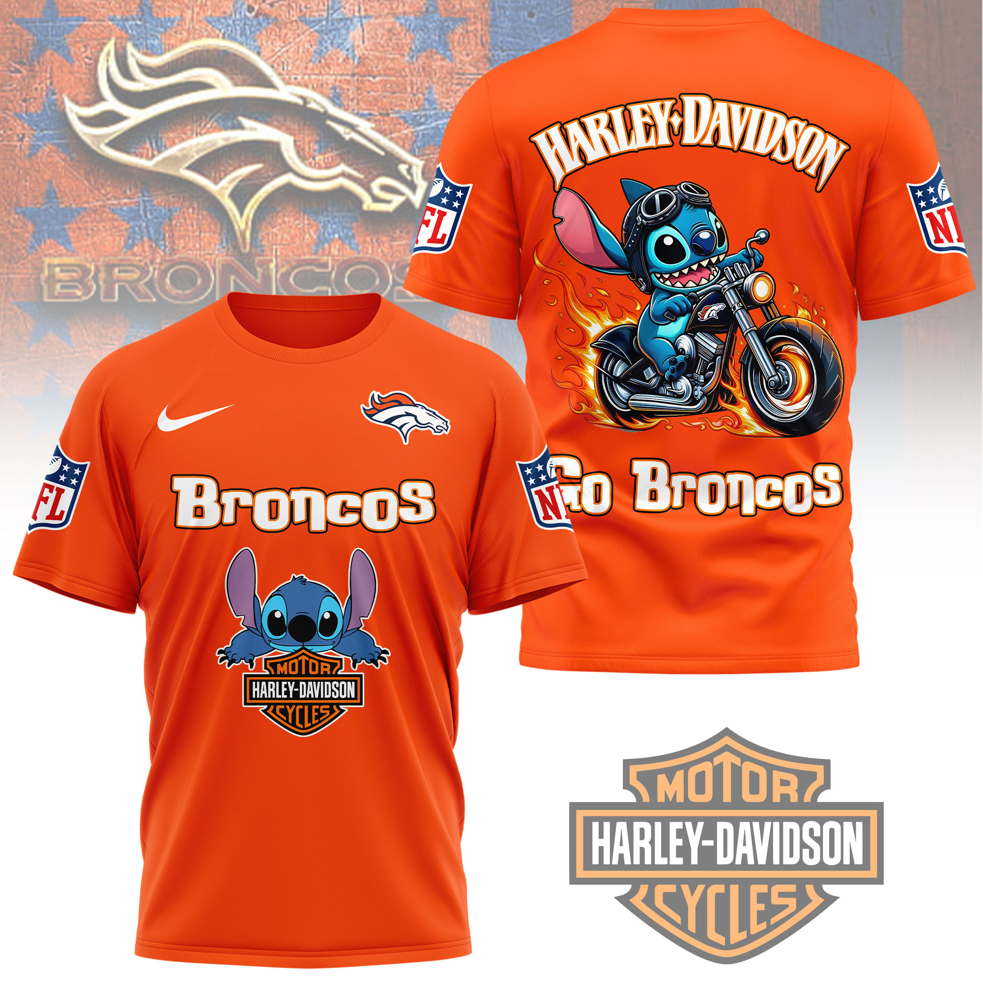 Denver Broncos | Premium NFL Stitch Harley Davidson 3D Shirt