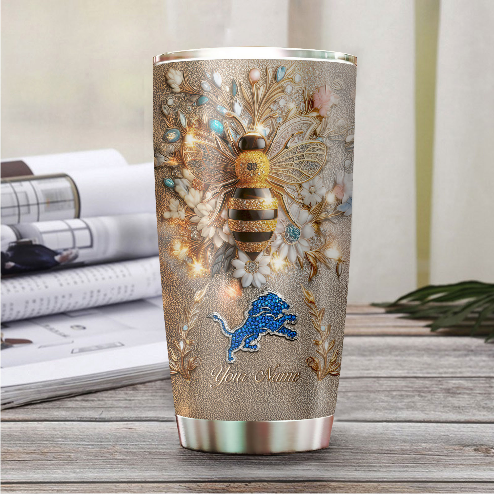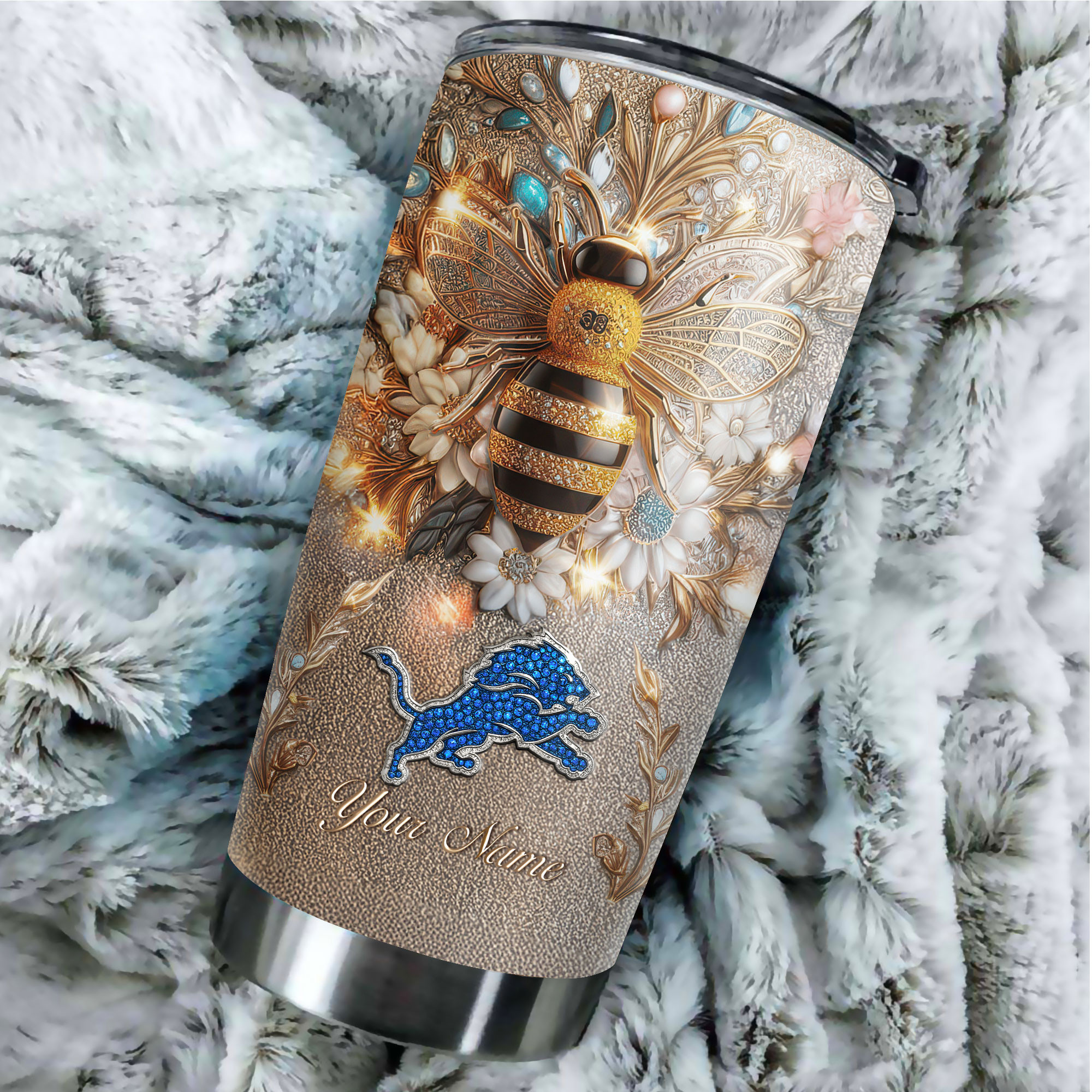 Categories: Detroit Lions, NFL, Premium NFL Bling Bee Tumbler TD