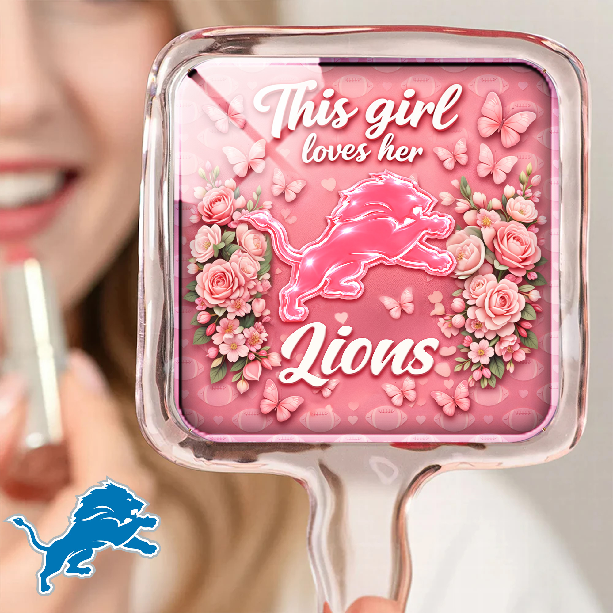 Detroit Lions | Premium NFL Butterfly Glam Handheld Mirror