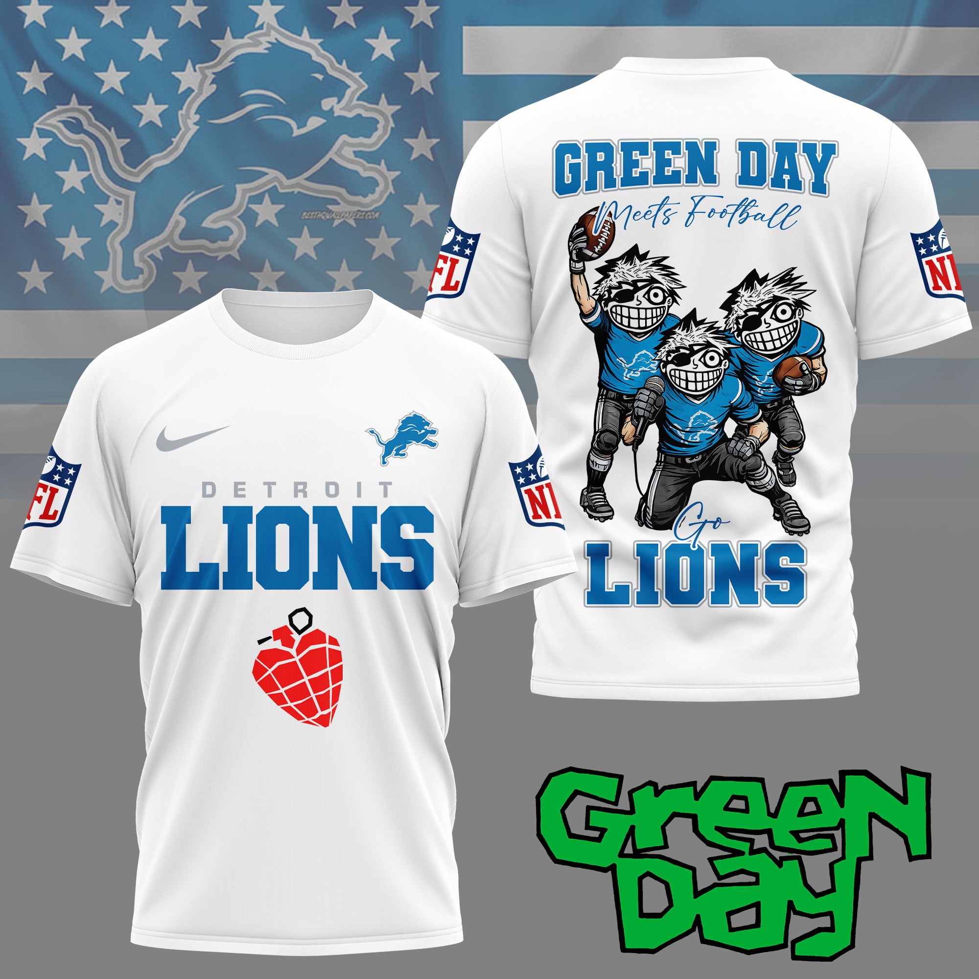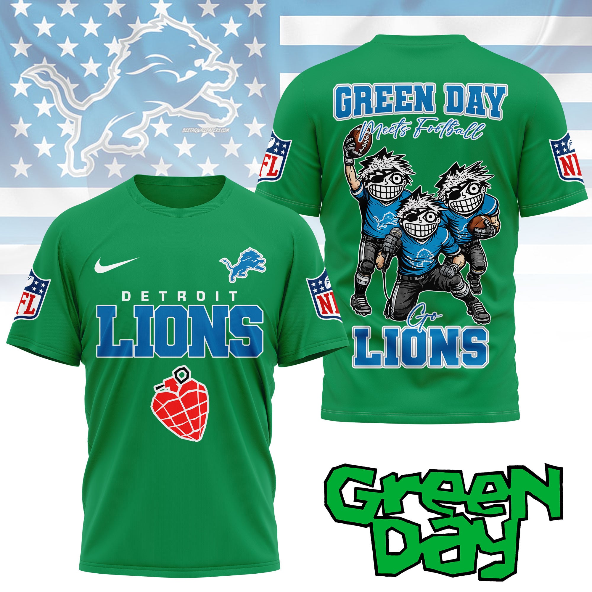 Detroit Lions | Premium NFL Green Day Fan 3D Shirt NY