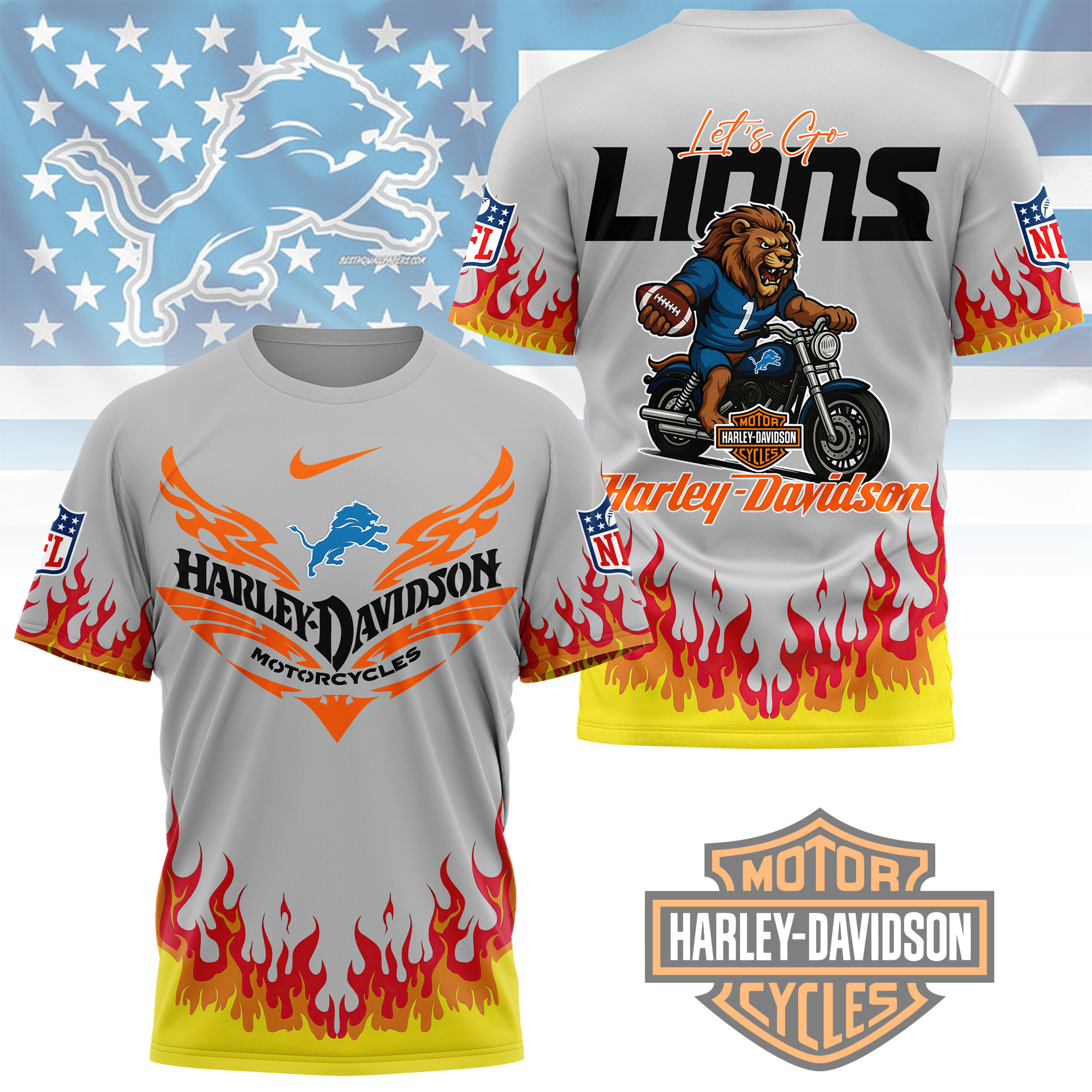 Detroit Lions | Premium NFL Harley Davidson Firewave 3D Shirt