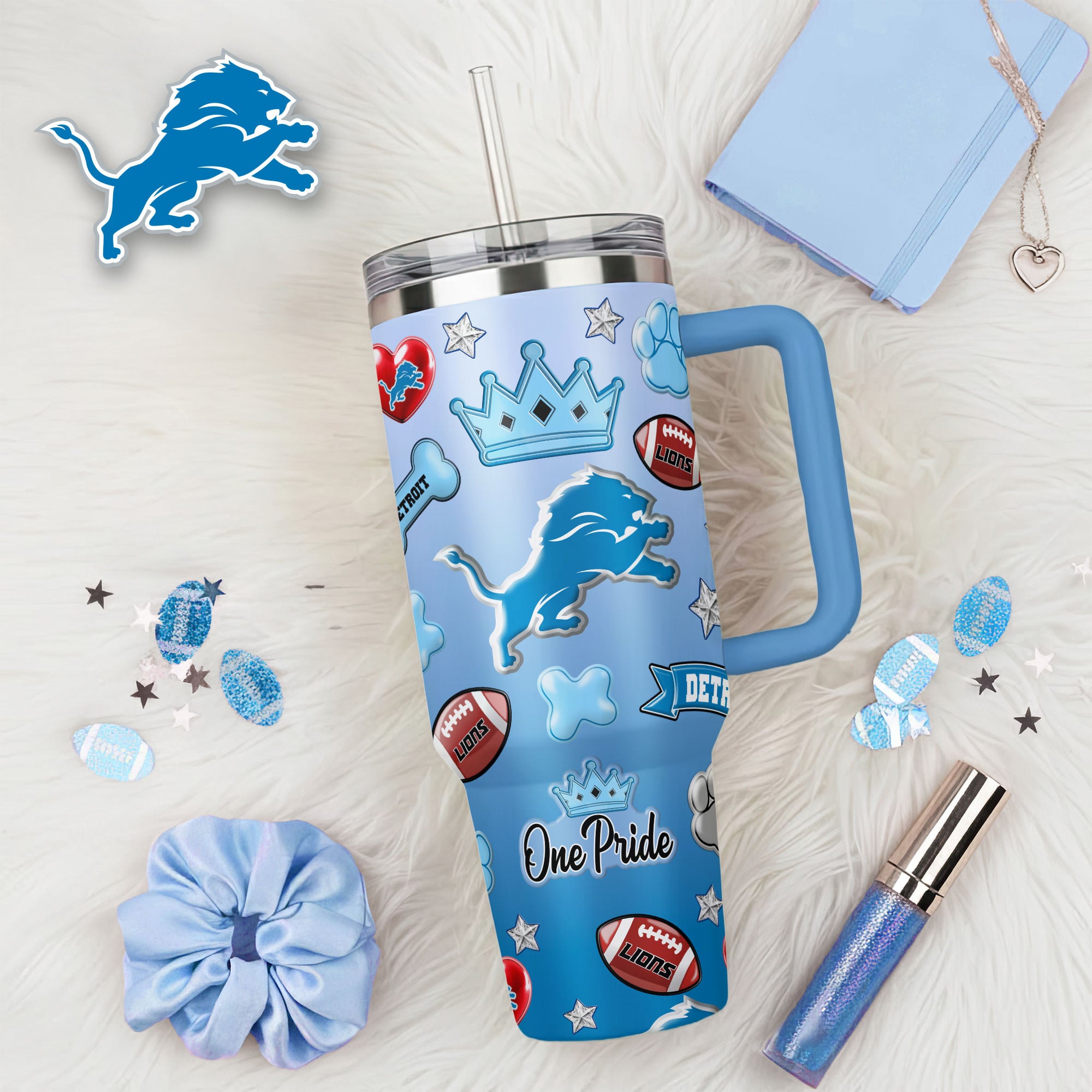 Categories: Detroit Lions, NFL, Premium NFL Icon Style 40oz Tumbler With Handle