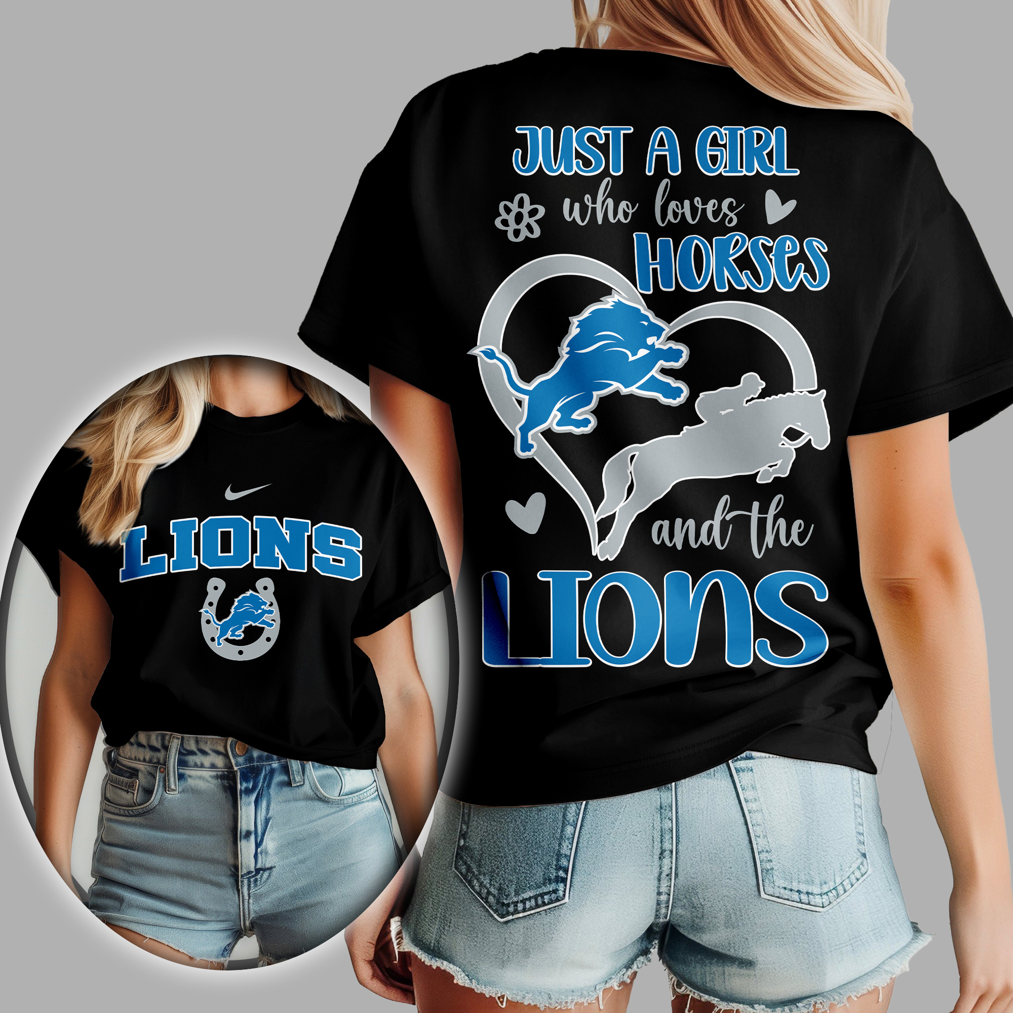 Detroit Lions | Premium NFL Just A Girl Who Loves Horses Women Shirt