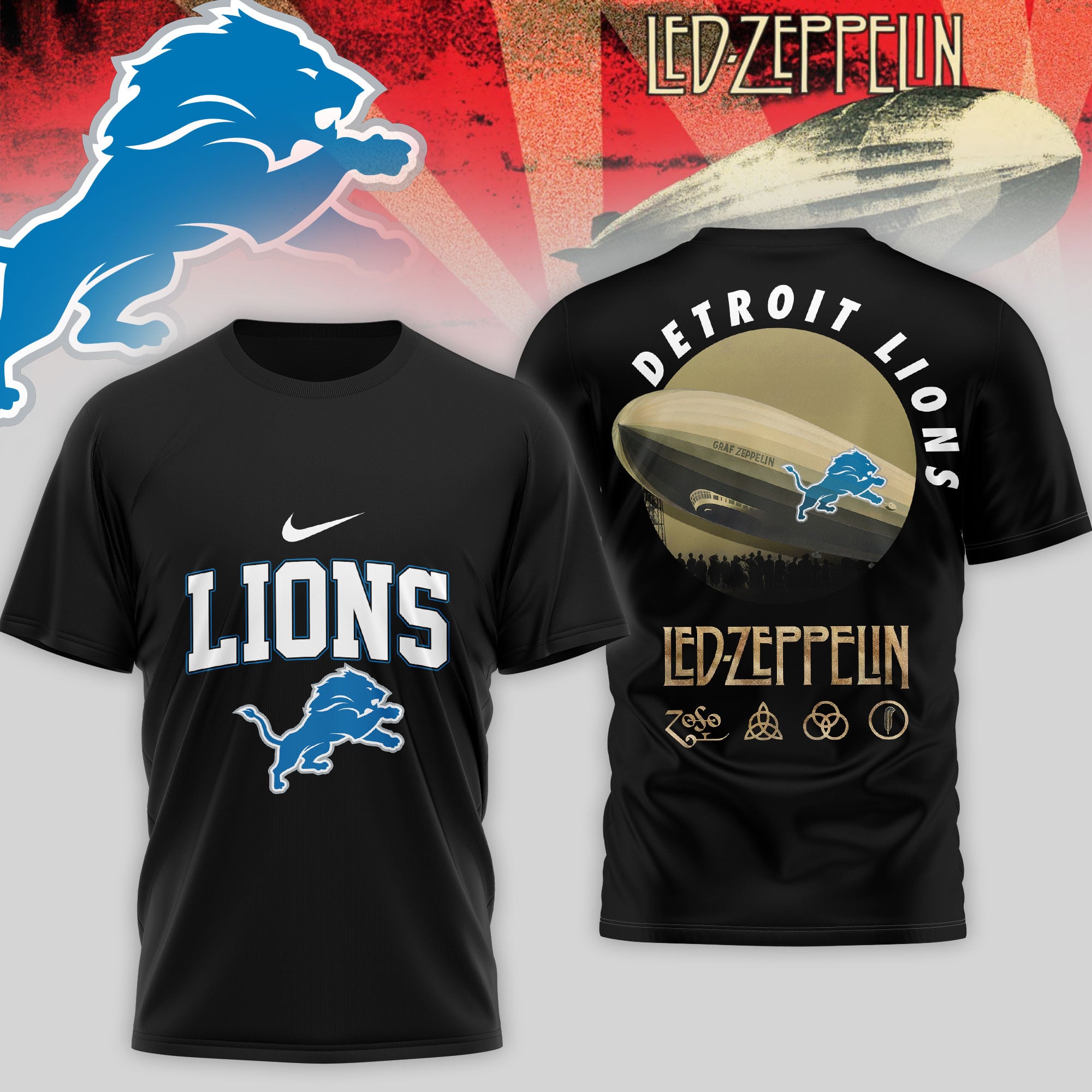Detroit Lions | Premium NFL Led Zeppelin 3D Shirt