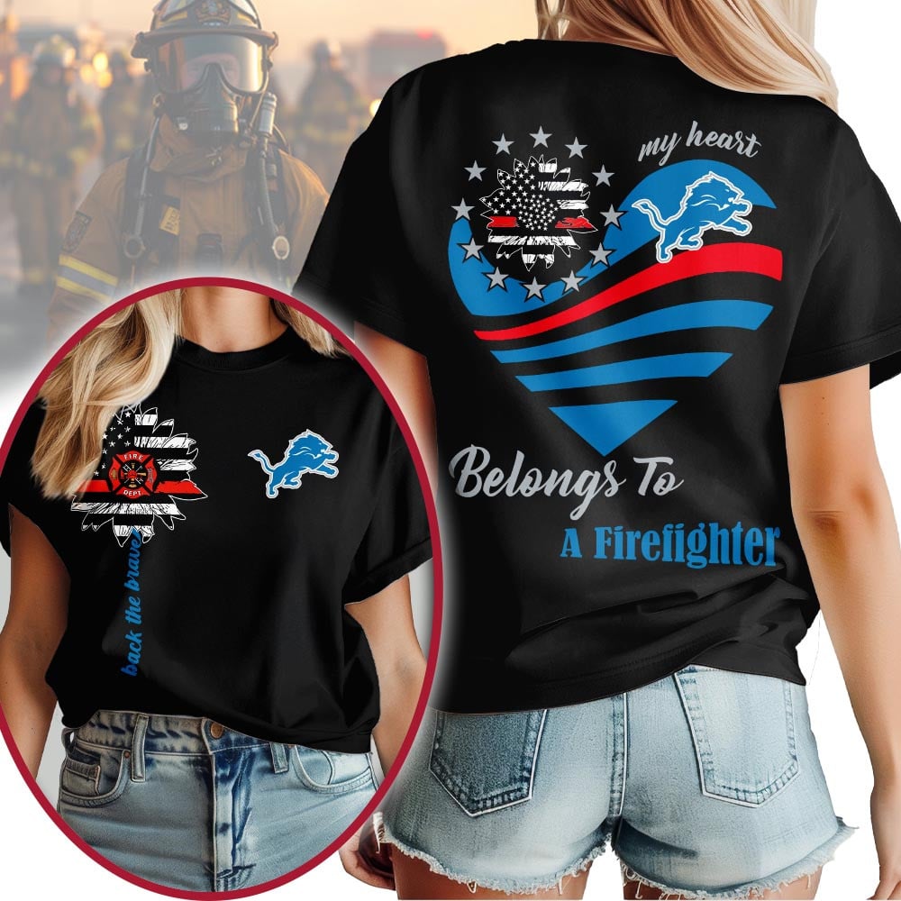Detroit Lions | Premium NFL My Heart Belongs To A Firefighter T-shirt