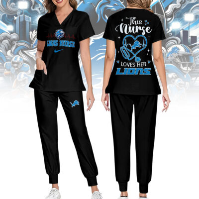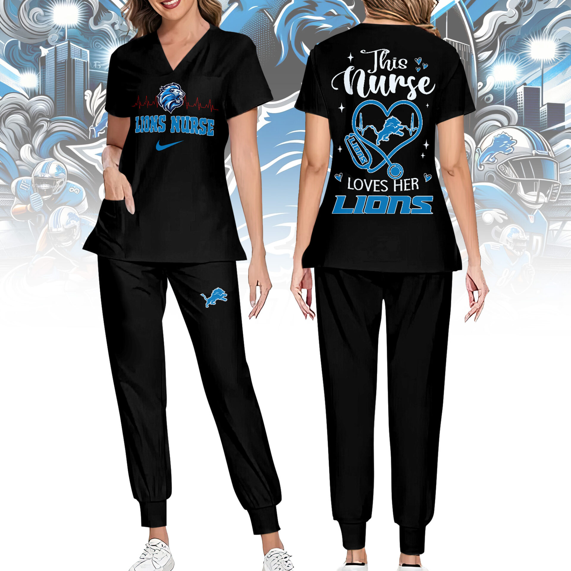 Detroit Lions | Premium NFL Nurse Appreciation Stretch V-Neck Scrub Top And Jogger Pant