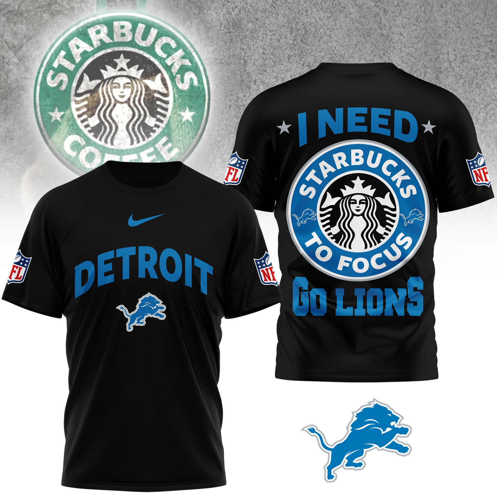 Detroit Lions | Premium NFL Starbucks Fan 3D Shirt
