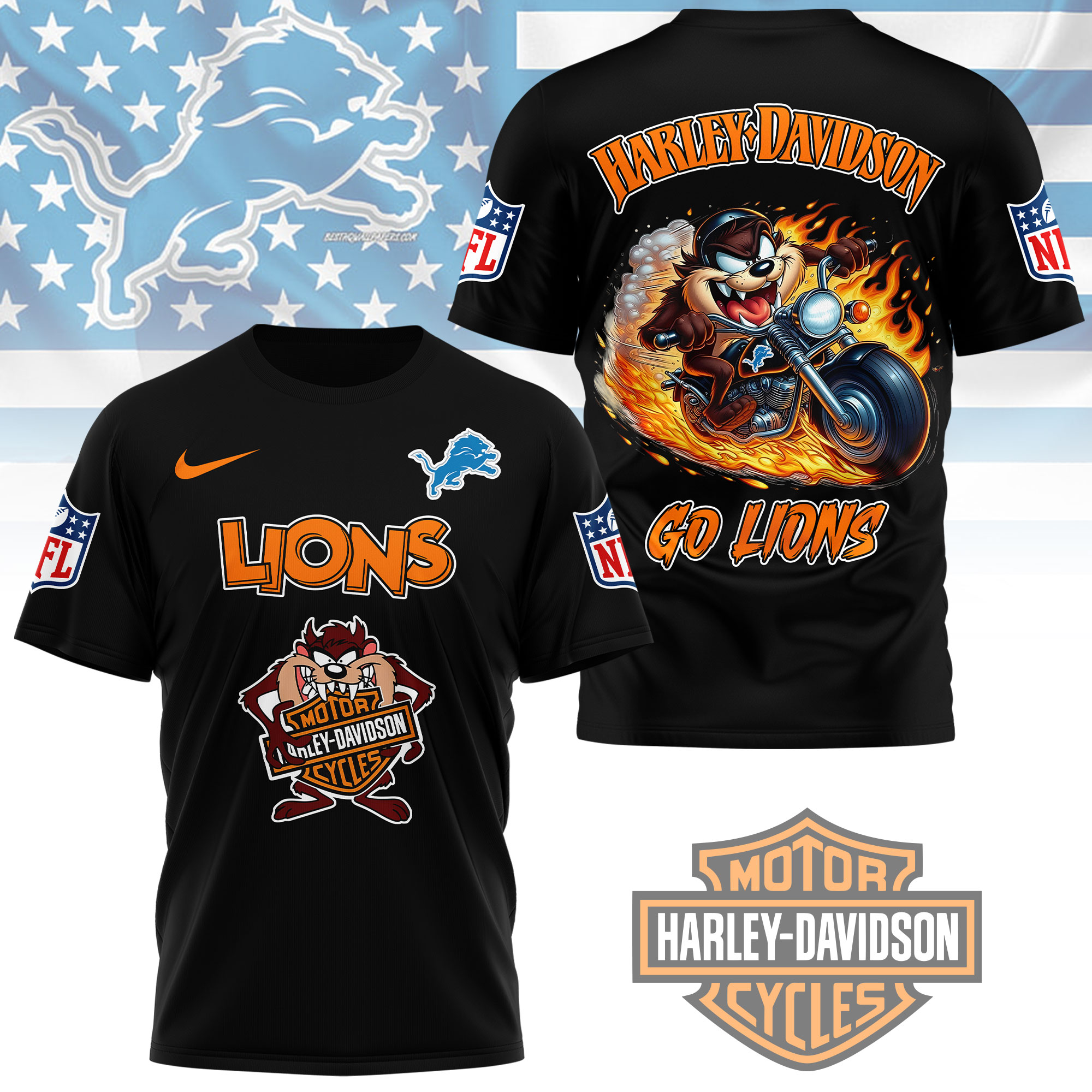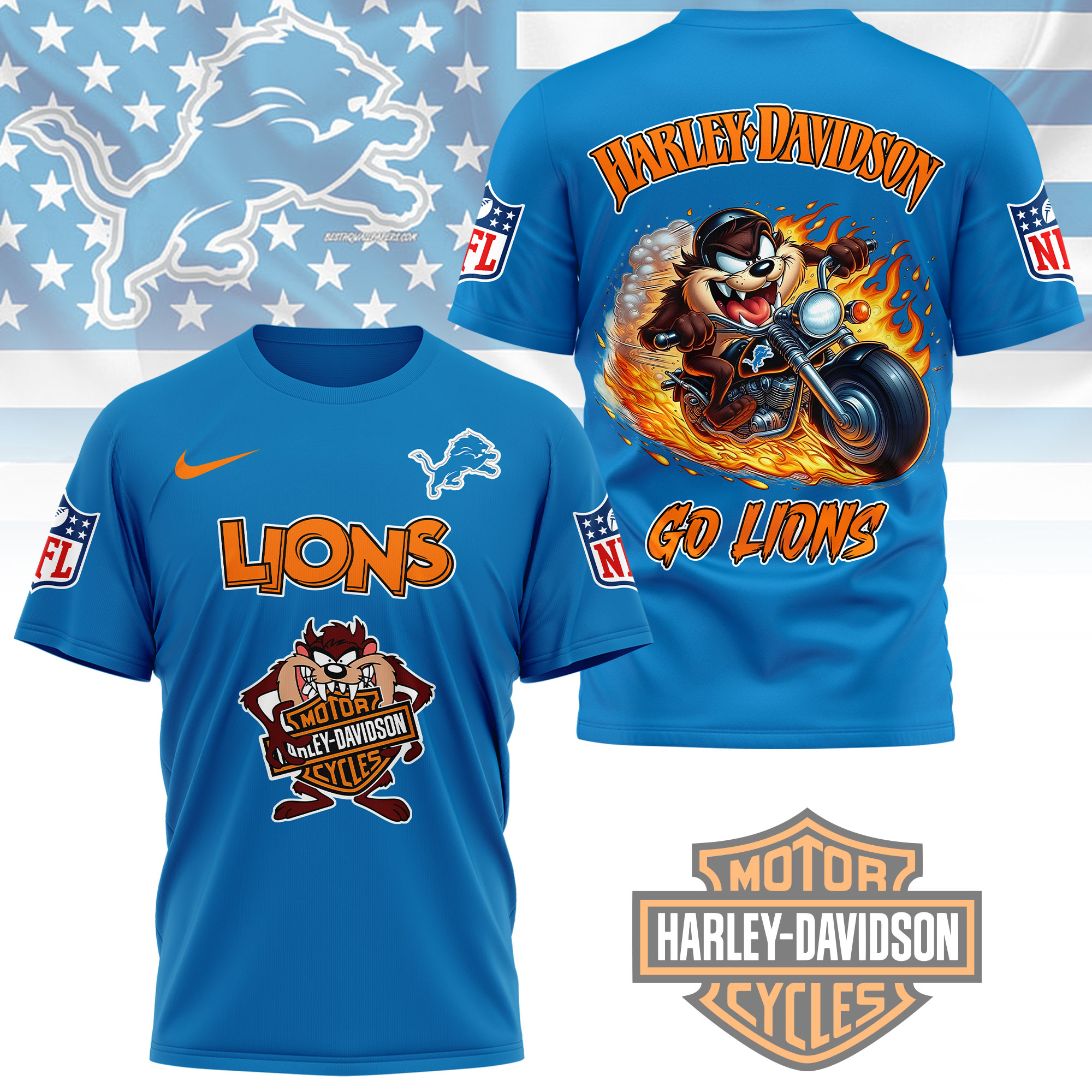 Detroit Lions | Premium NFL Taz Looney Tunes 3D Shirt
