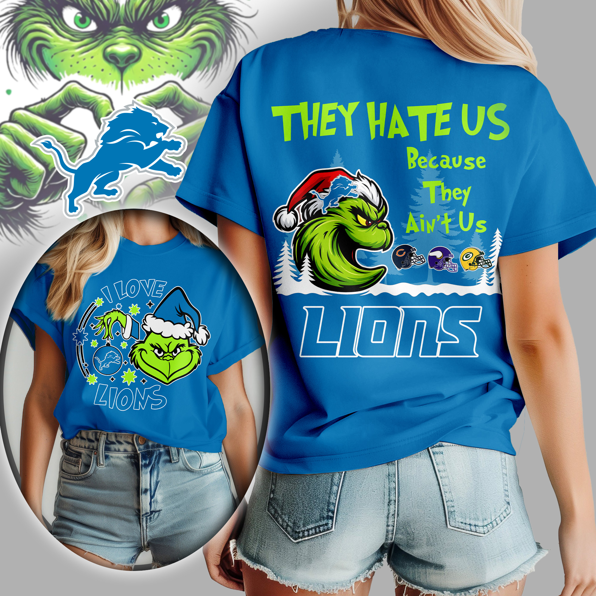 Detroit Lions | Premium NFL They Hate Us Grinch Women Shirt