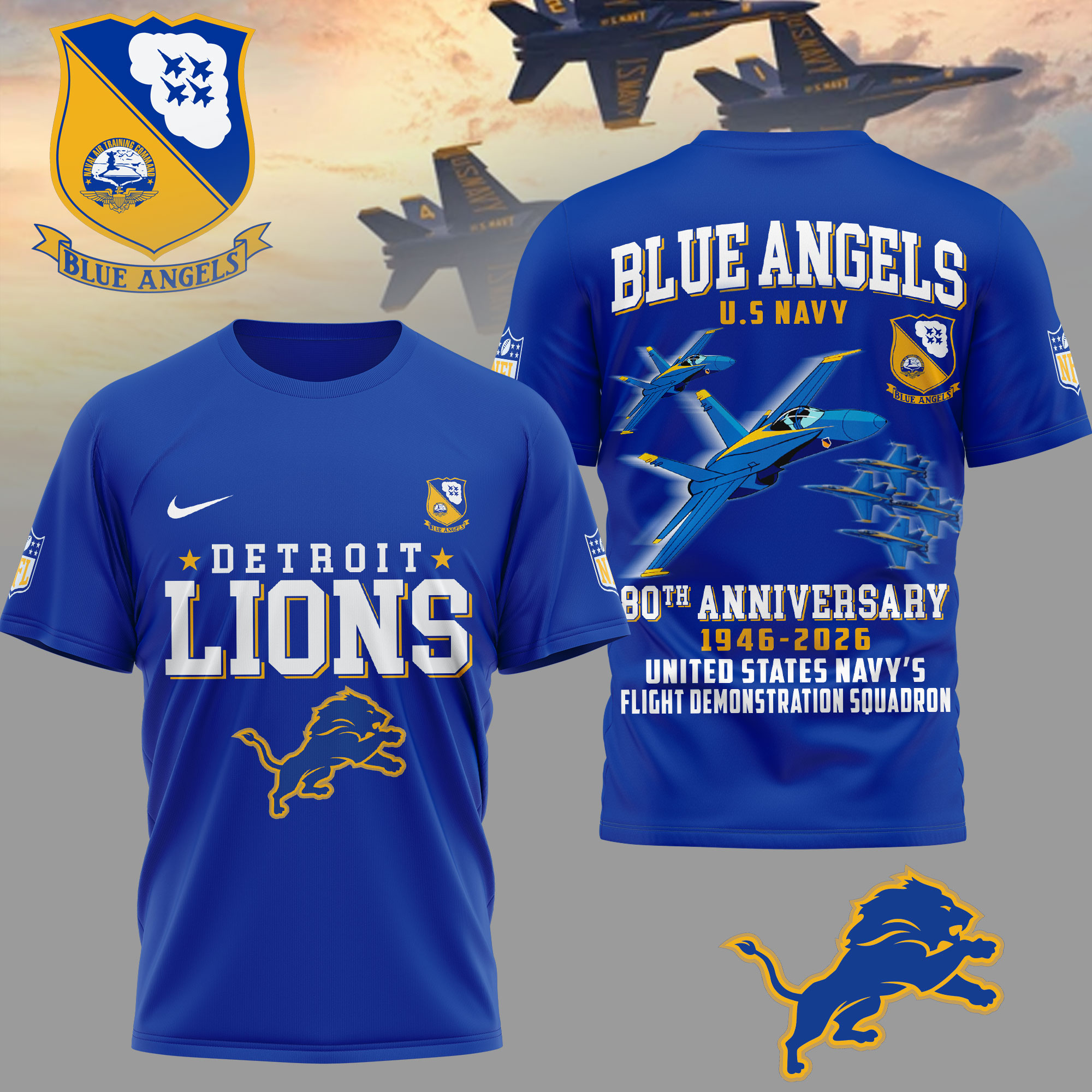 Detroit Lions | Premium NFL U.S Navy Blue Angels 3D Shirt