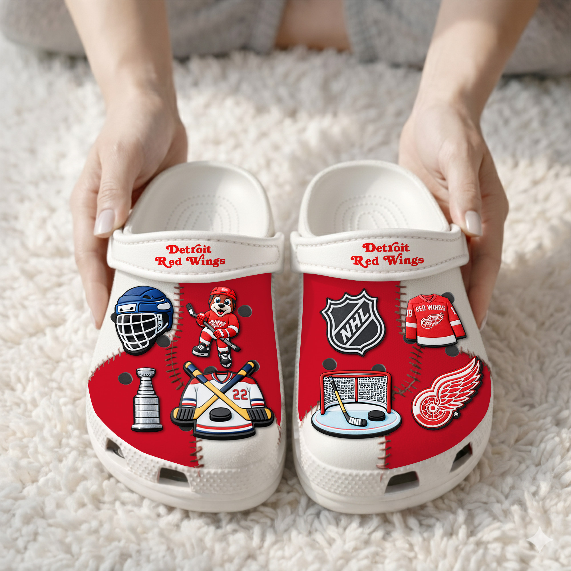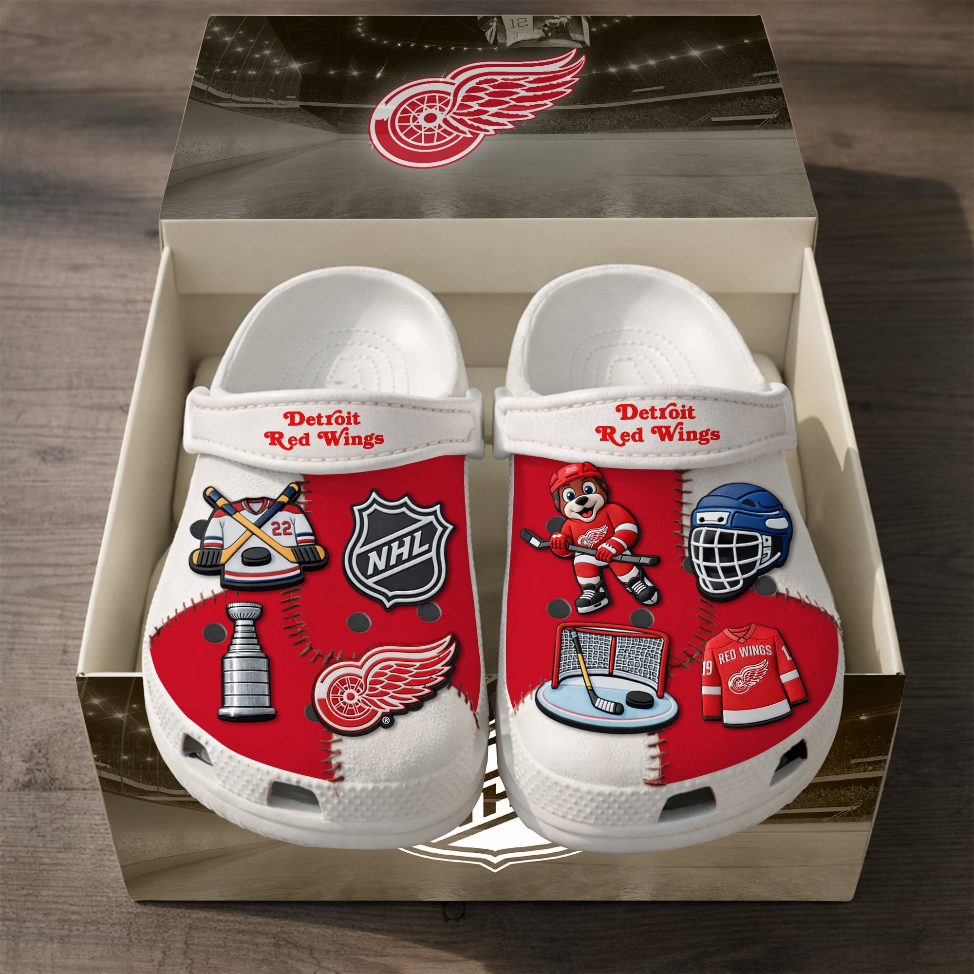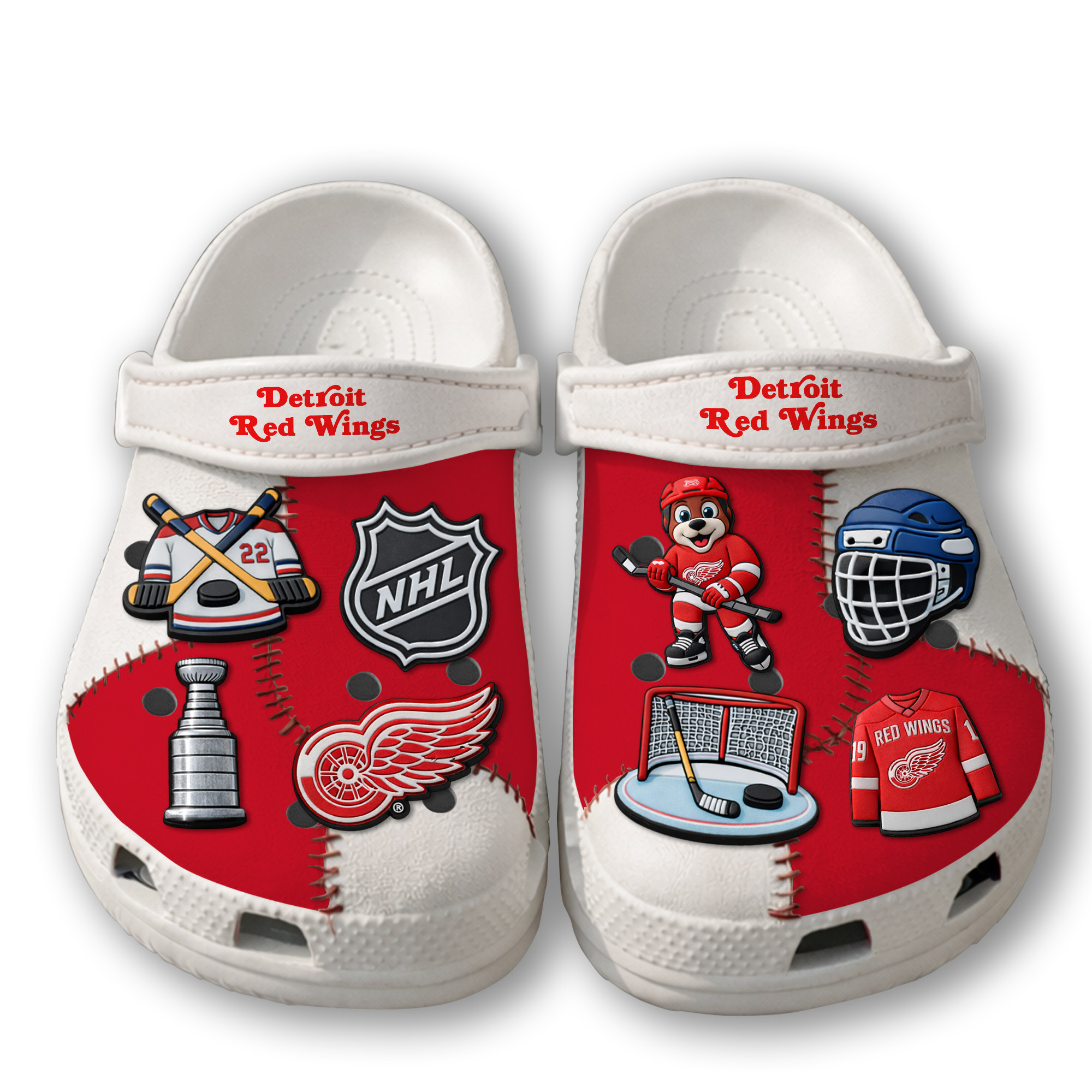 - This item: Detroit Red Wings | PREMIUM NHL CLOGS WITH CHARMS Original price was: $119.99.$74.99Current price is: $74.99.