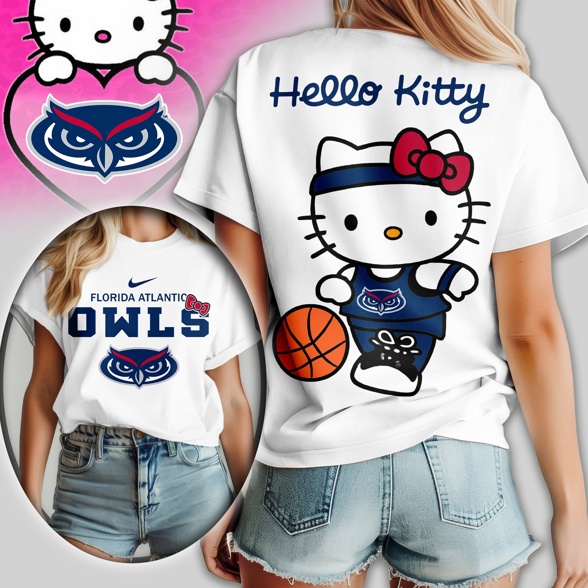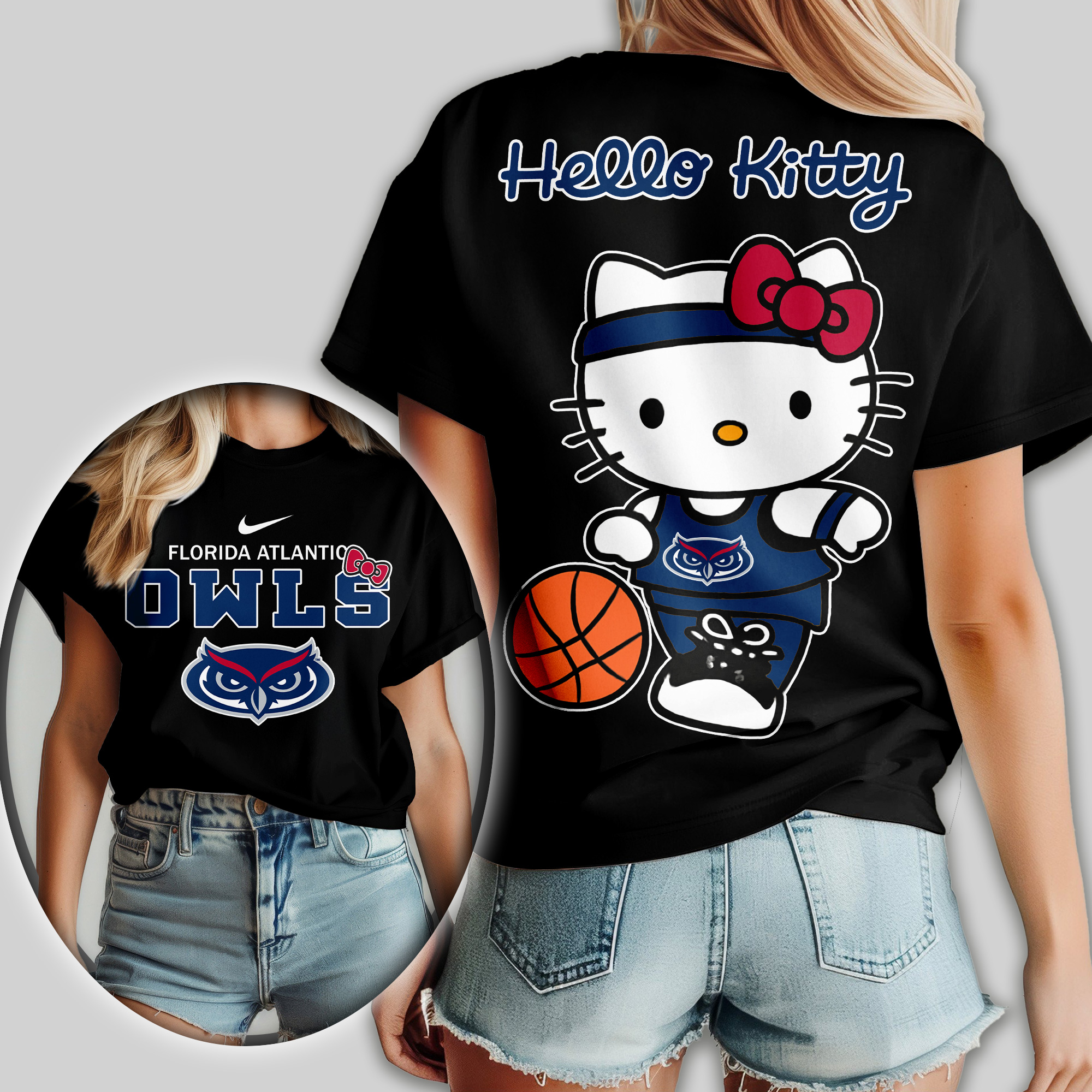 Florida Atlantic Owls | Premium NCAA Hello Kitty Basketball Women Shirt