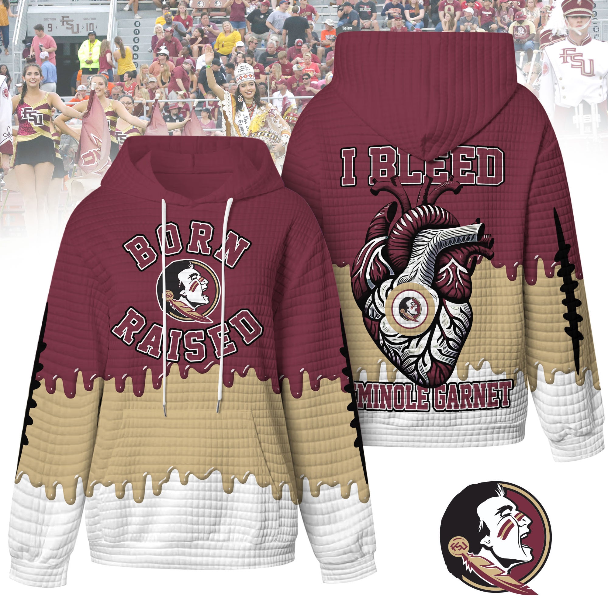 Florida State Seminoles | Premium NCAA Born and Raised Waffle Hoodie