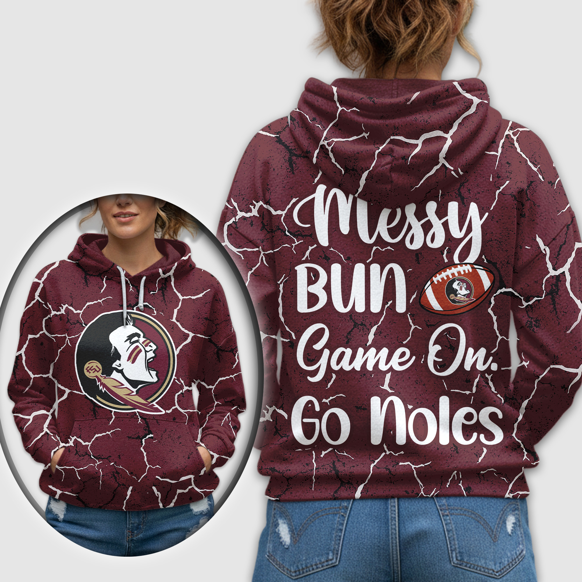 Florida State Seminoles | Premium NCAA Messy Bun Game On 3D Hoodie