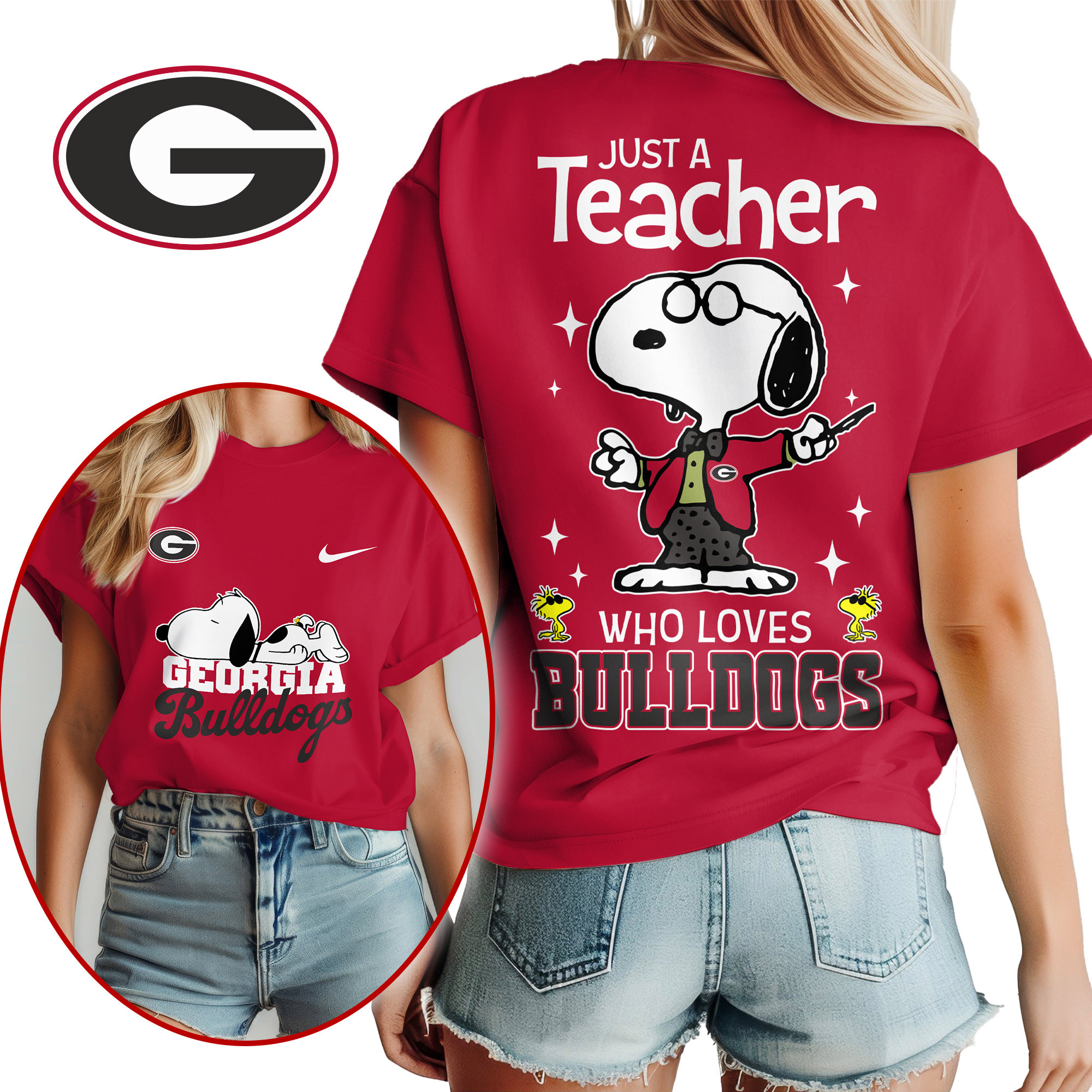 Georgia Bulldogs | Premium NCAA Snoopy Teacher Appreciation Women Shirt