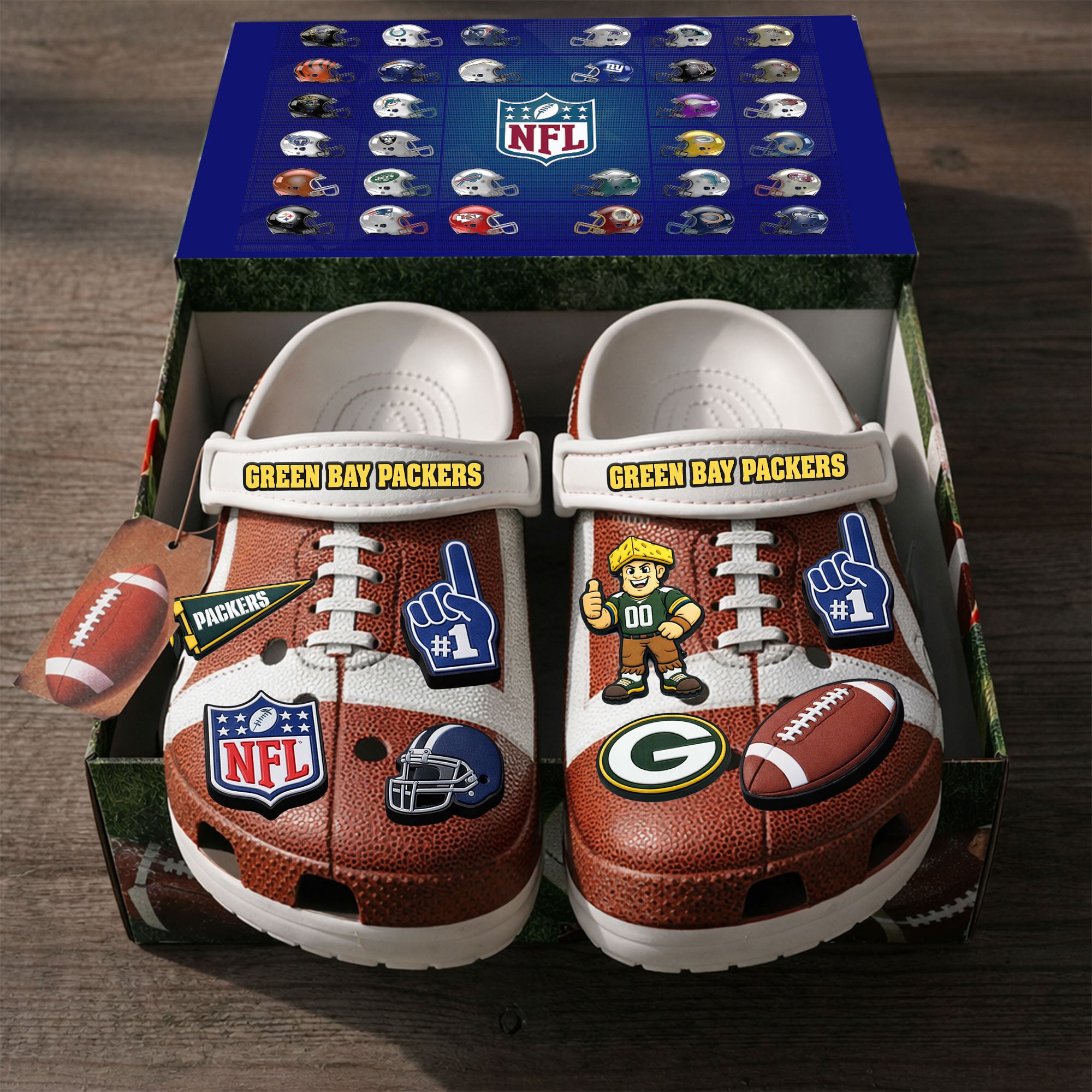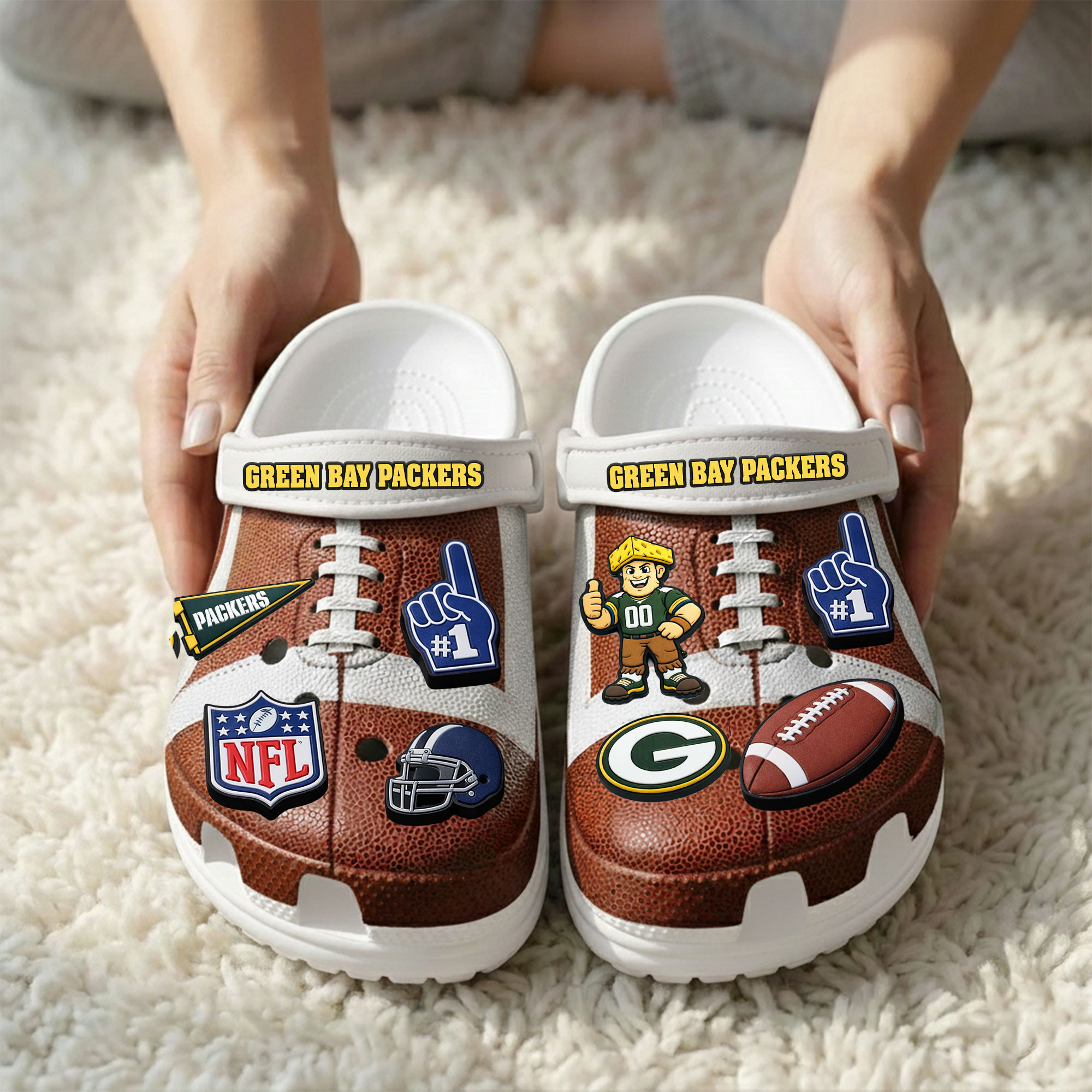 - This item: Green Bay Packers | PREMIUM NFL CLOGS WITH CHARMS Original price was: $119.99.$74.99Current price is: $74.99.