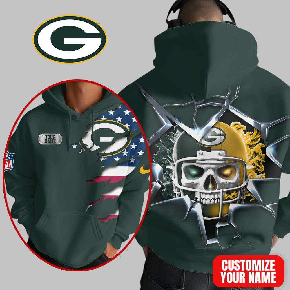 Green Bay Packers | Premium NFL Customizable Skull Hoodie