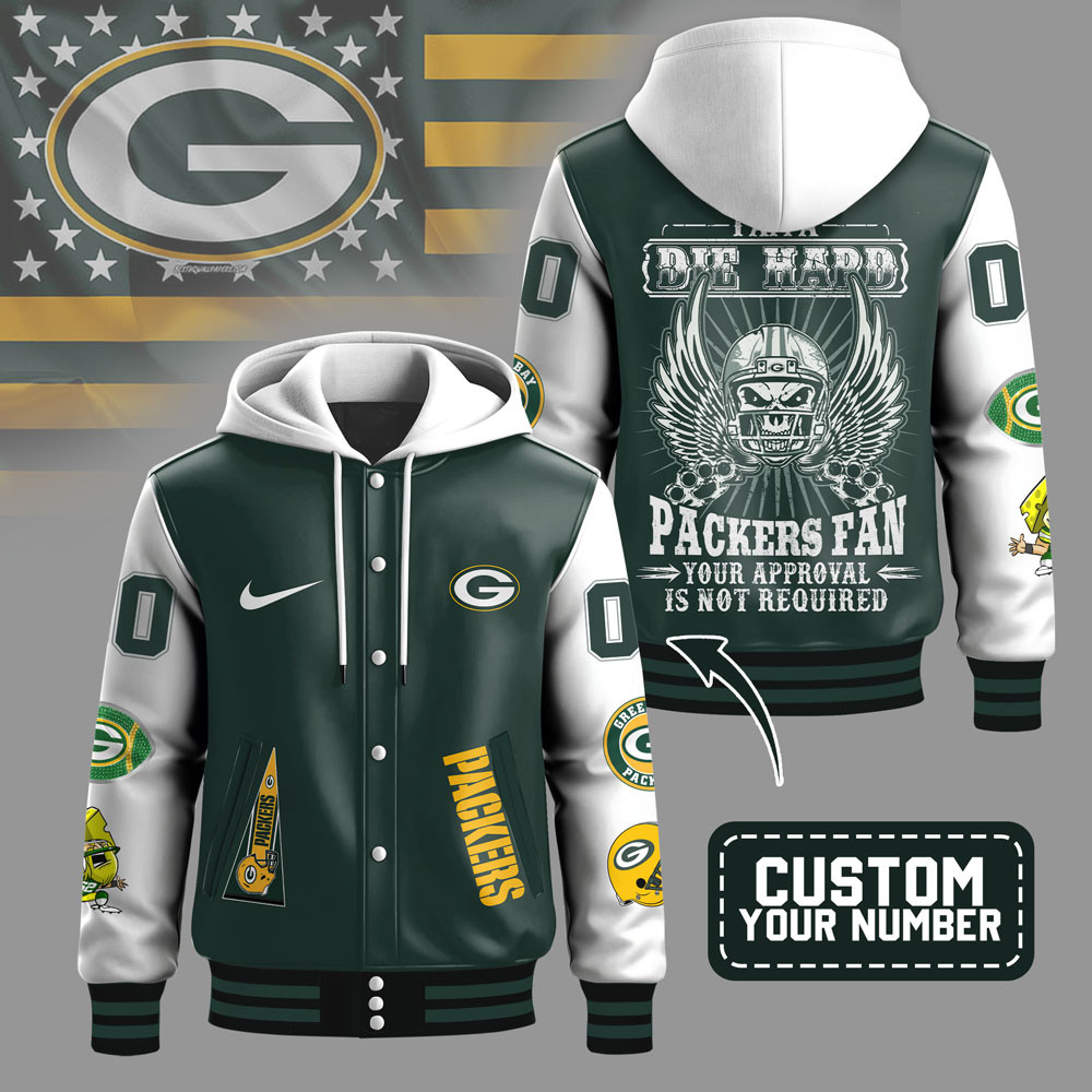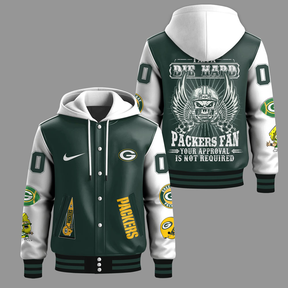 Categories: Green Bay Packers, NFL, Premium NFL Die Hard Fan Hooded Baseball Jacket