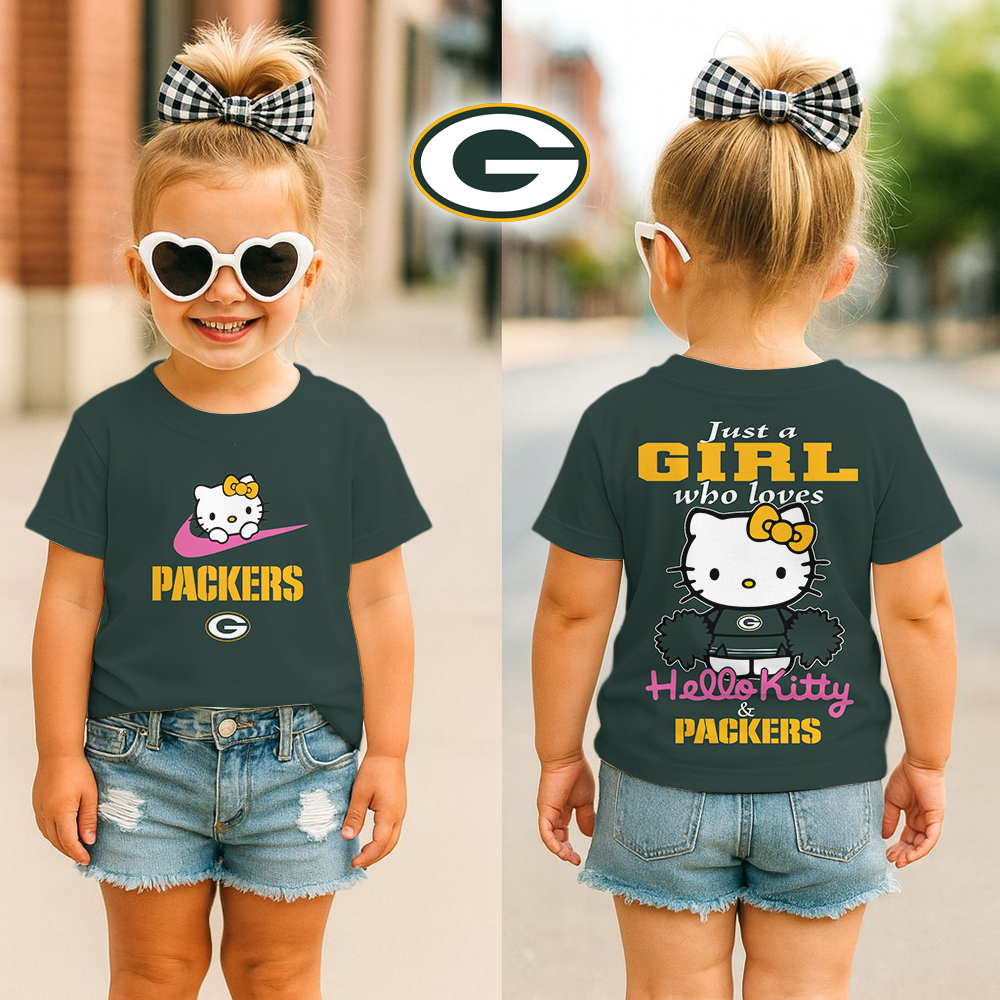 Green Bay Packers | Premium NFL Football Girl Hello Kitty Fan Kid Shirt