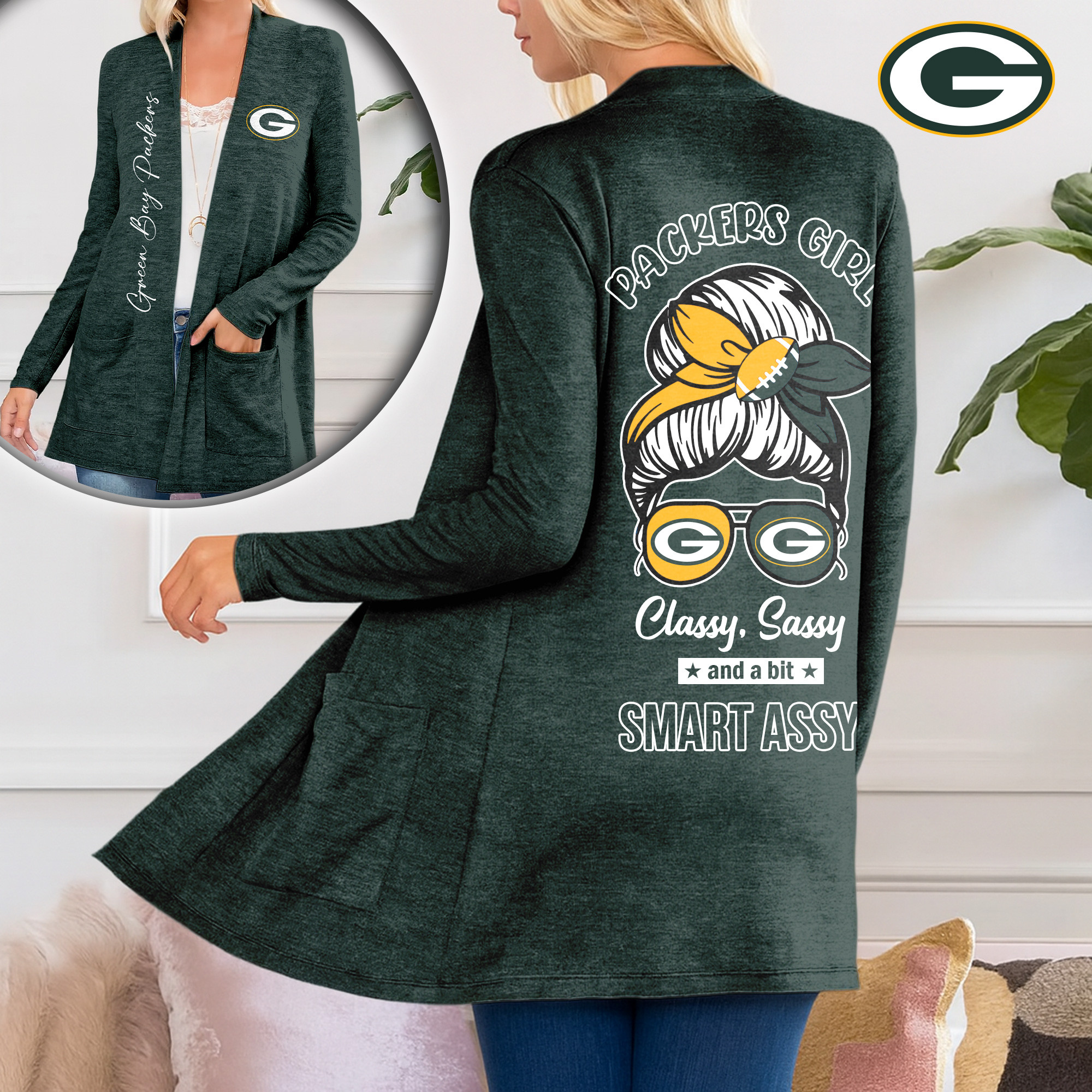 Green Bay Packers | Premium NFL Football Girl Women Path Pocket Cardigan