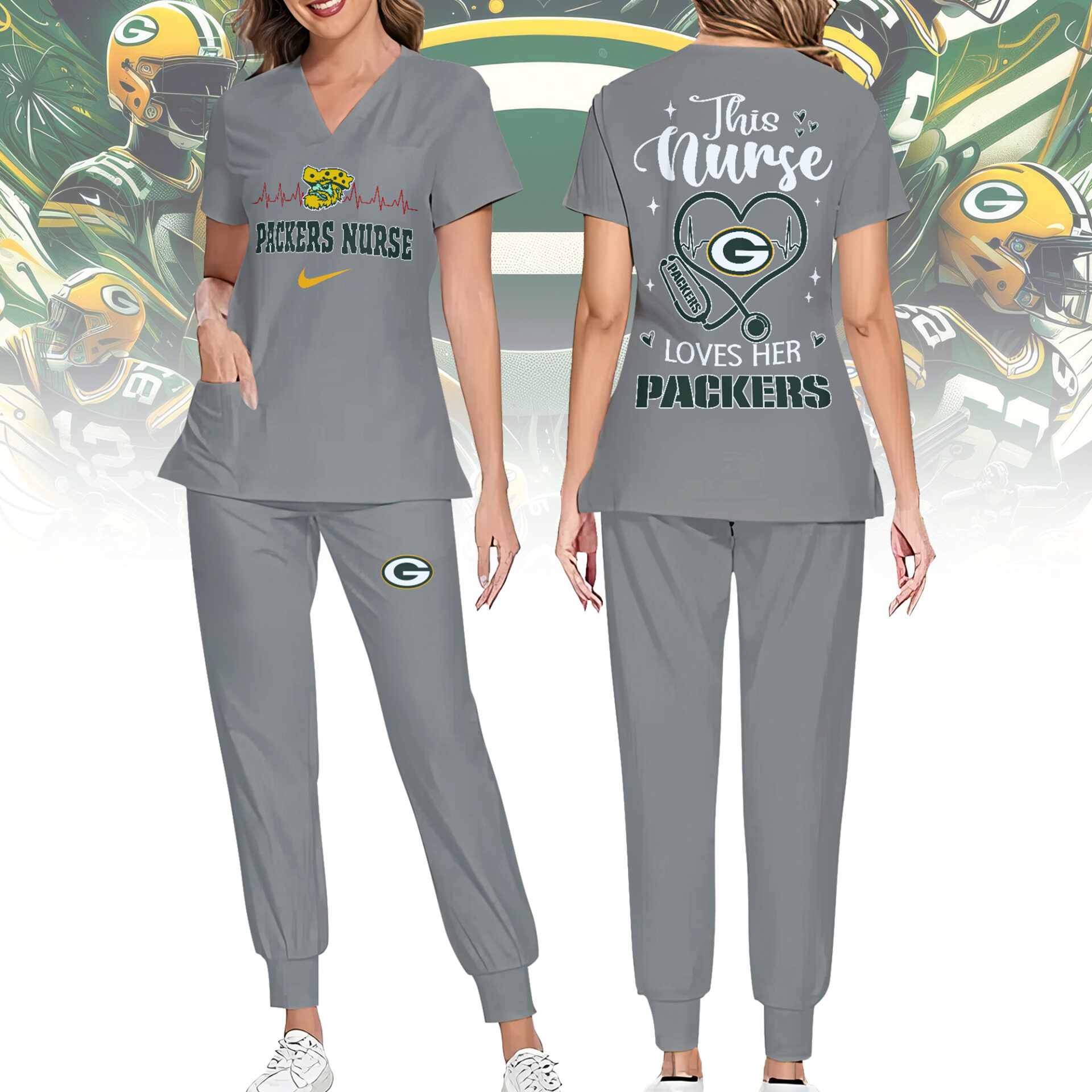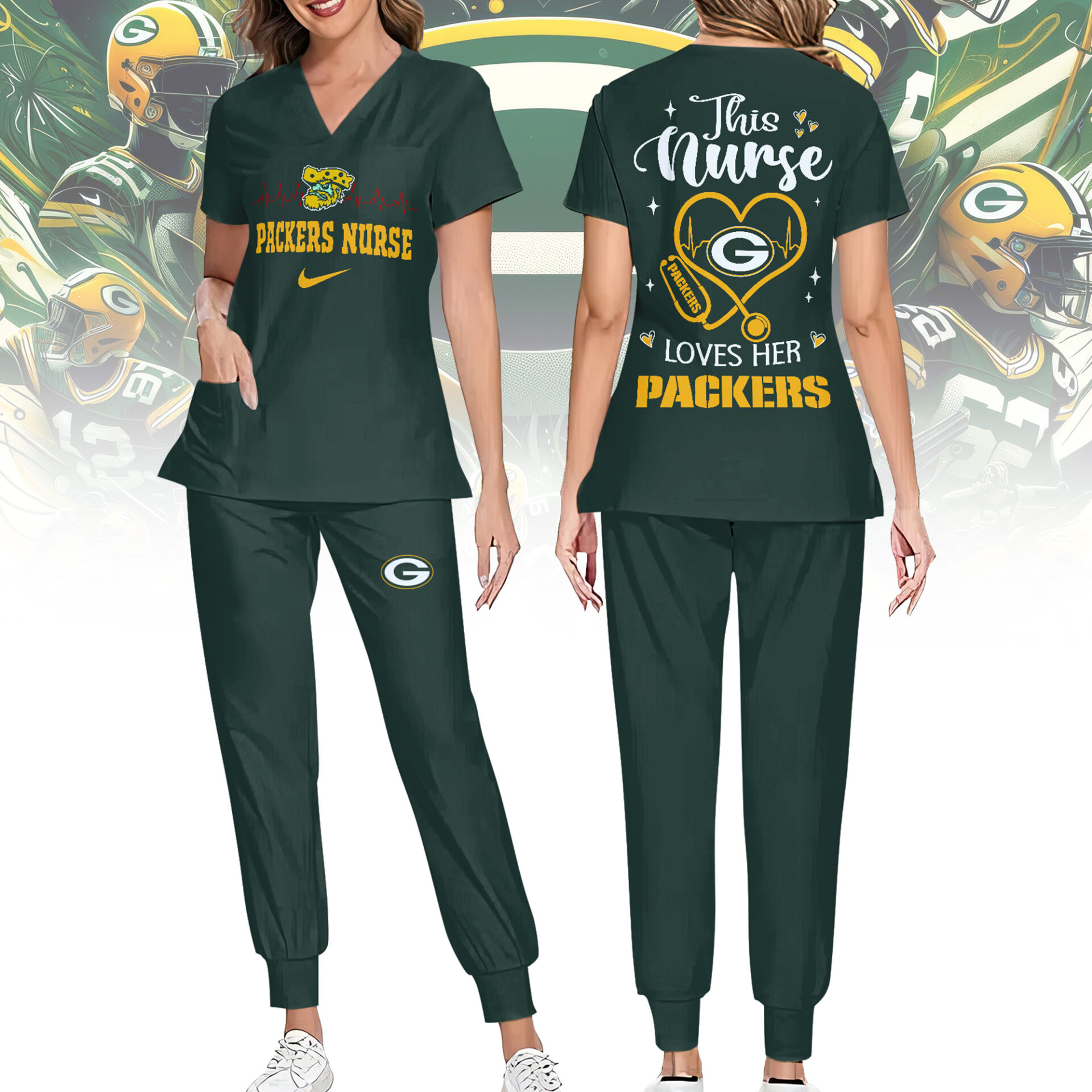 Green Bay Packers | Premium NFL Nurse Appreciation Stretch V-Neck Scrub Top And Jogger Pant