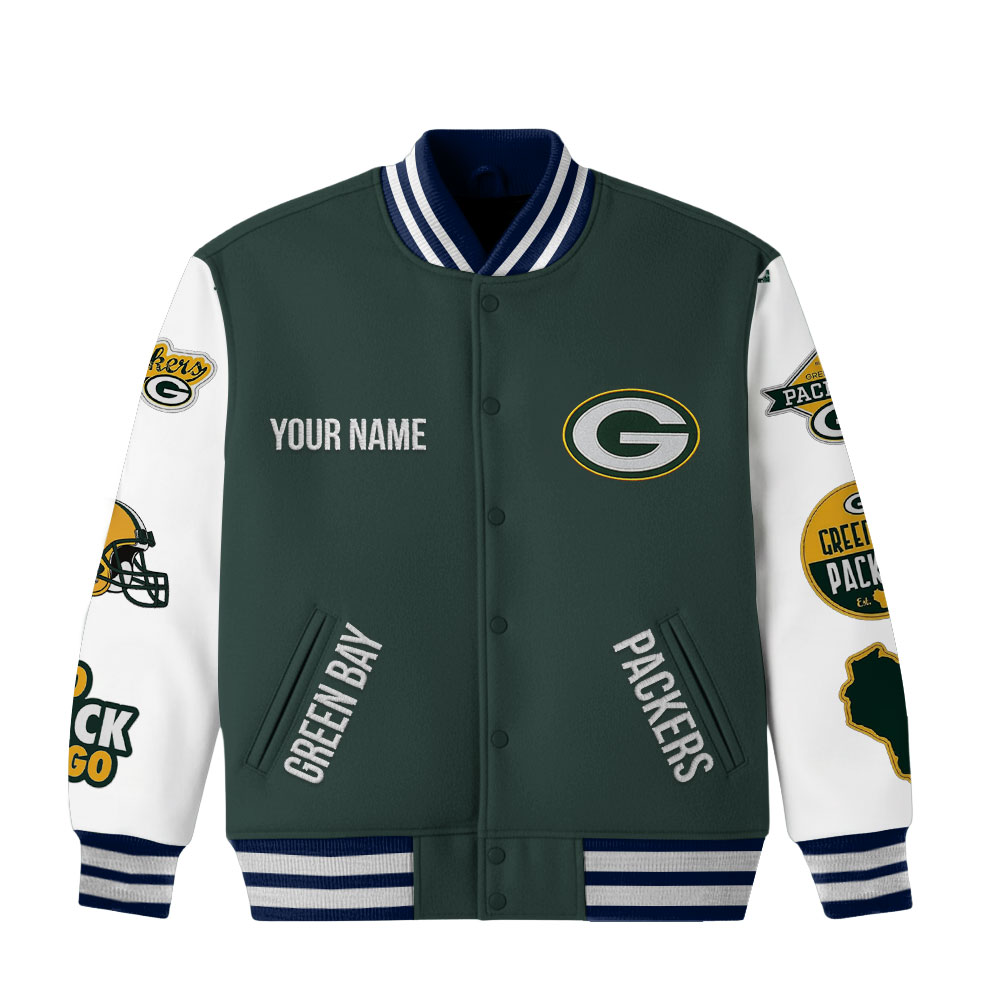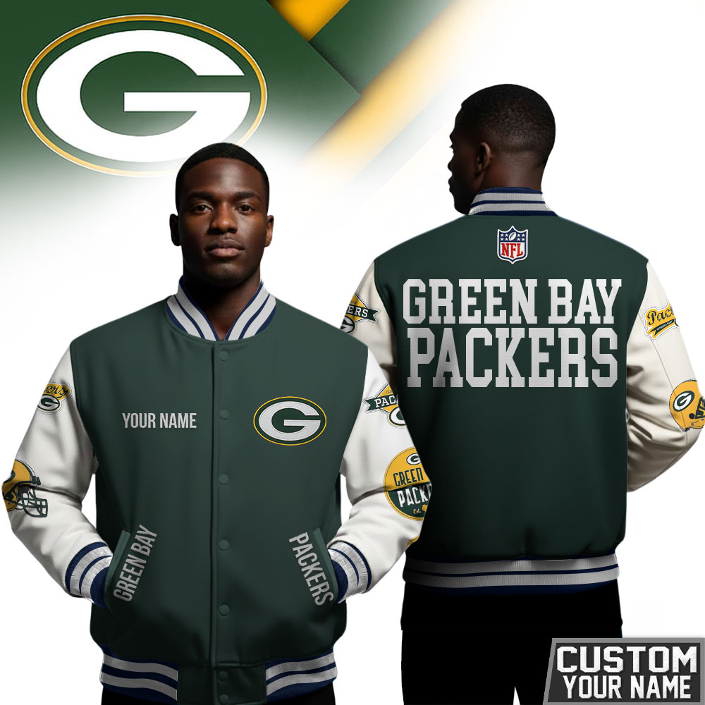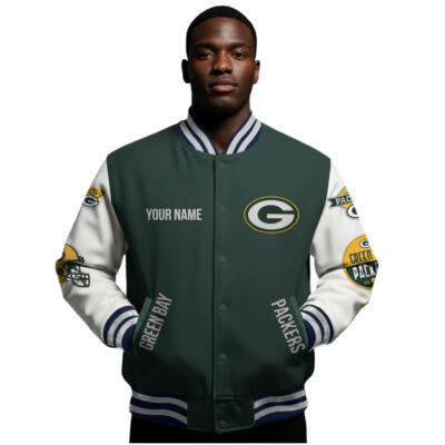 Categories: Green Bay Packers, NFL, Premium NFL Personalized Football Varsity Jacket TD