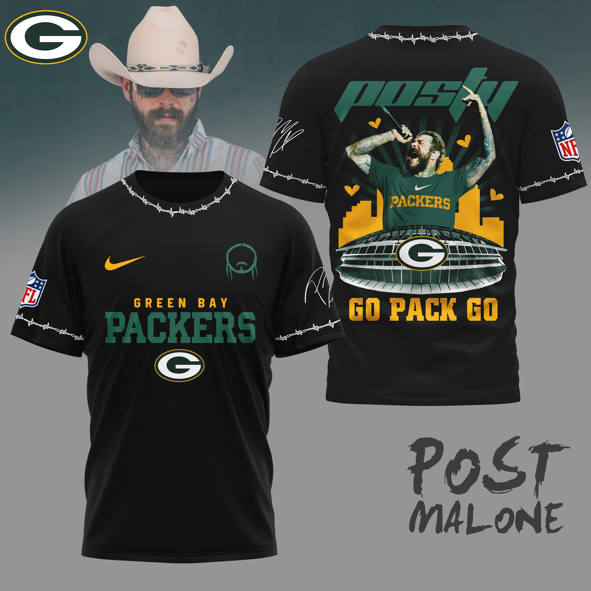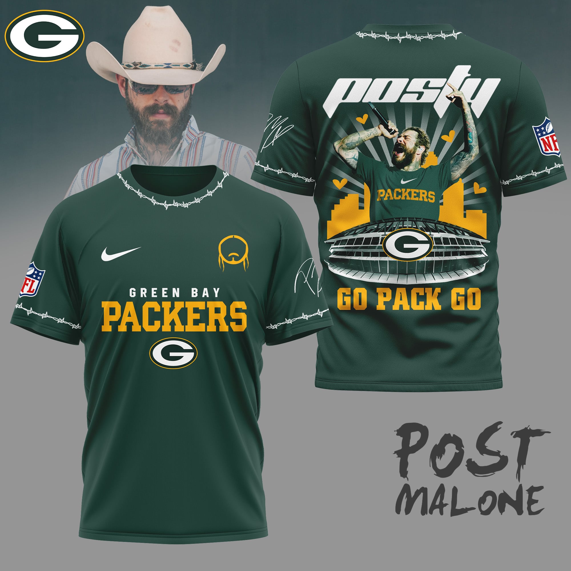 Green Bay Packers | Premium NFL Post Malone Fan 3D Shirt