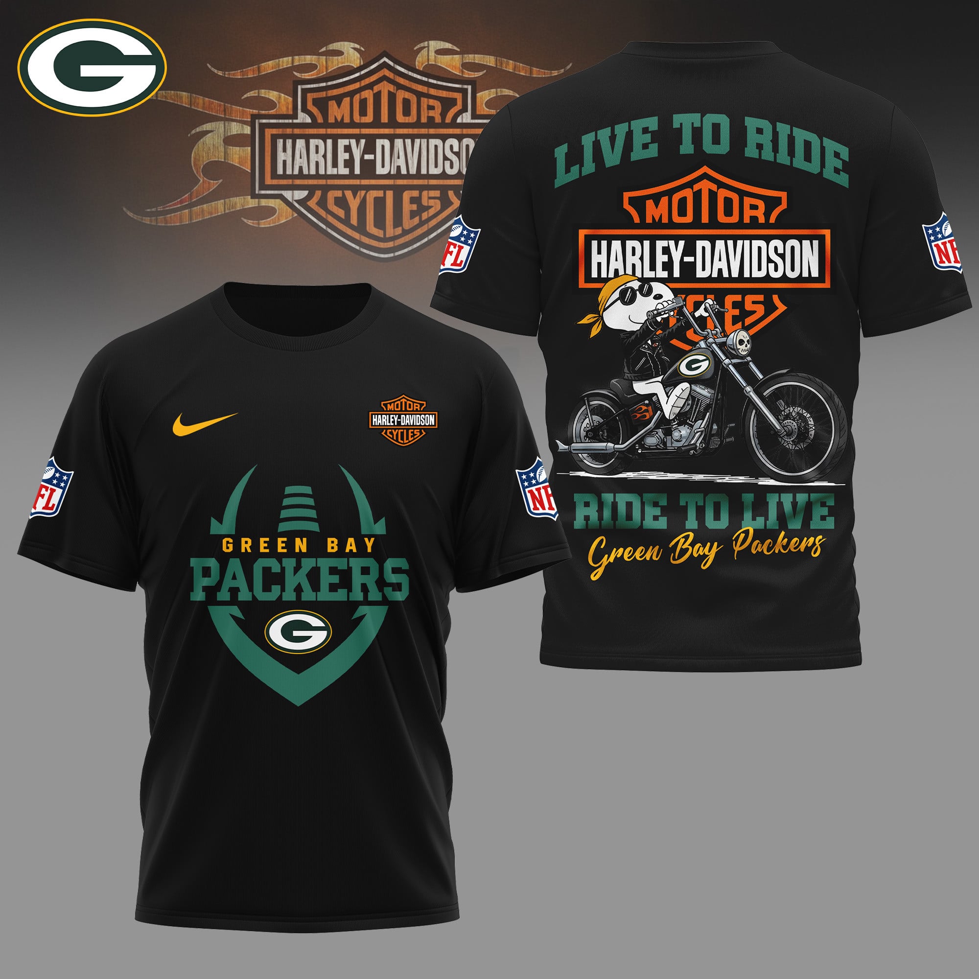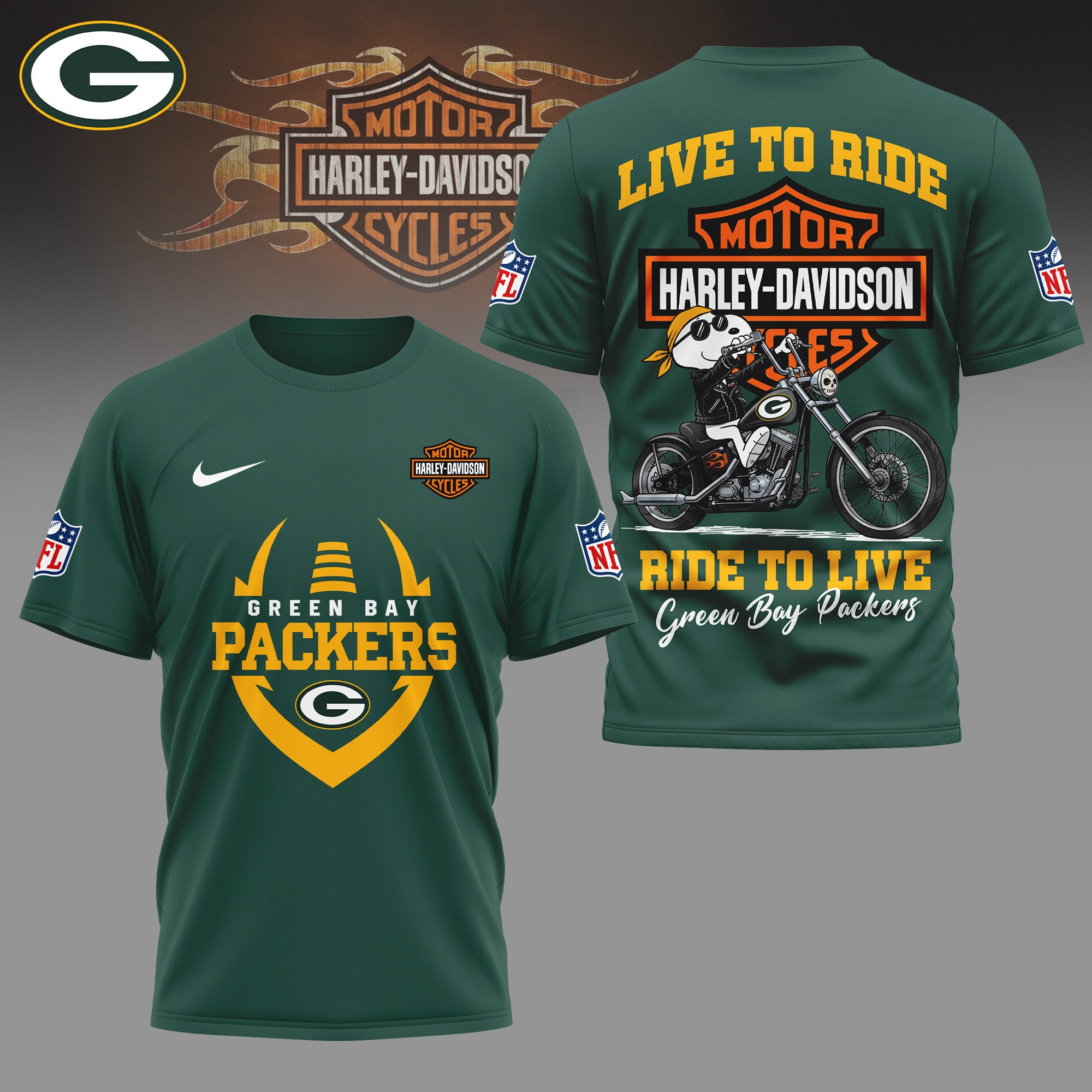Green Bay Packers | Premium NFL Snoopy Harley Davidson 3D Shirt