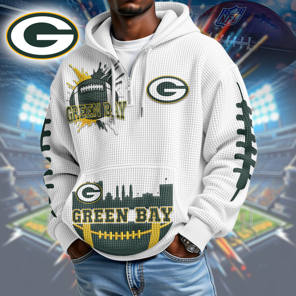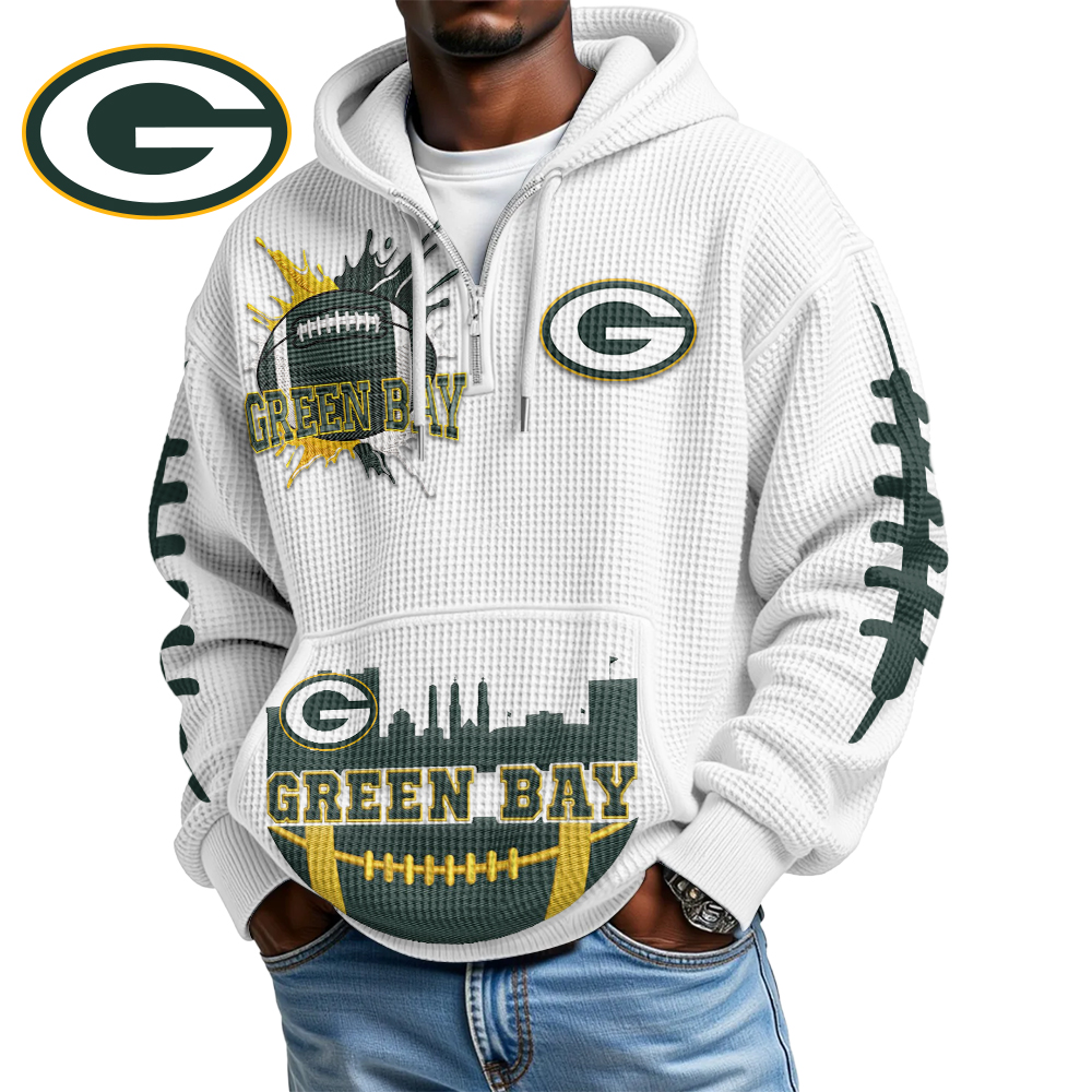 Green Bay Packers | Premium NFL Waffle Zipper Long Sleeve Hooded Sweatshirt