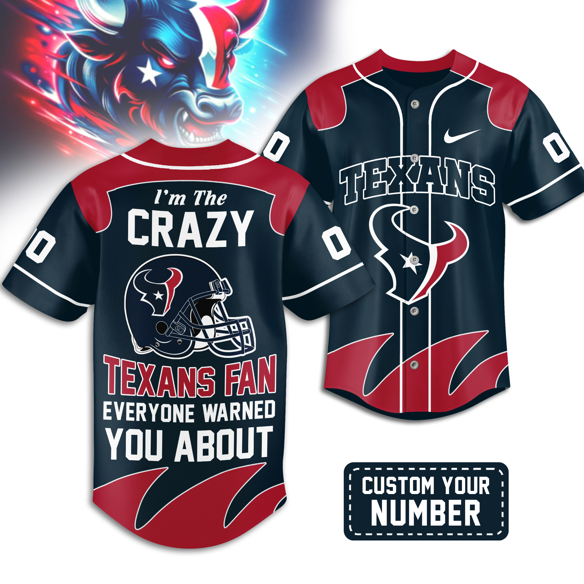 Houston Texans | Premium NFL Crazy Football Fan Personalized Jersey