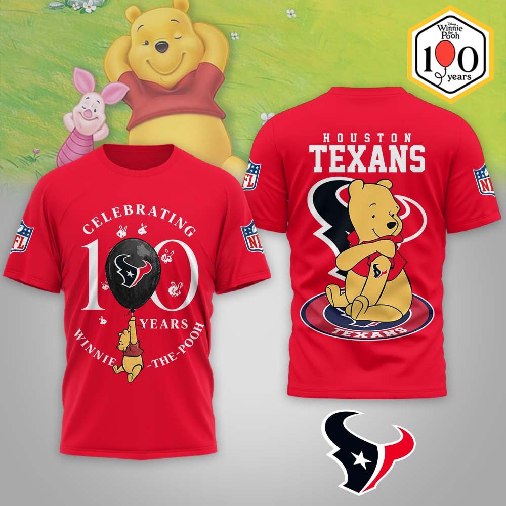 Houston Texans | Premium NFL Winnie The Pooh 100th Anniversary 3D Shirt