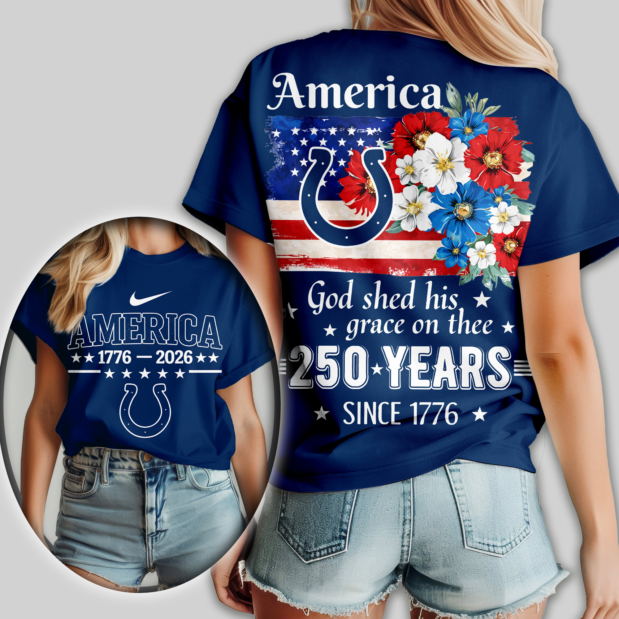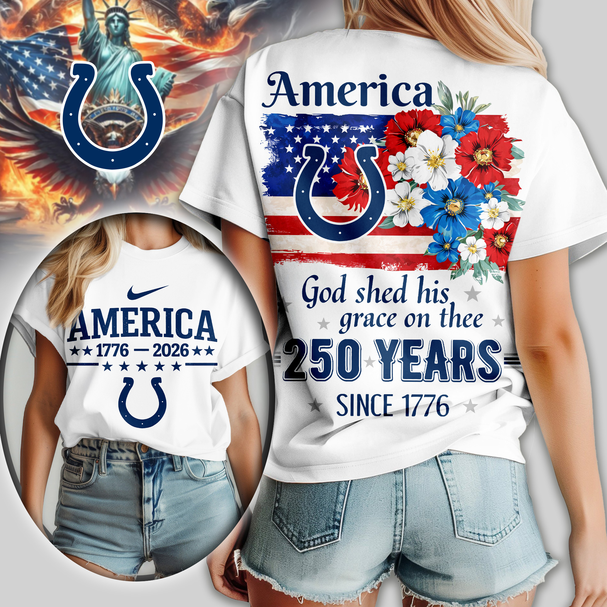 Indianapolis Colts | Premium NFL America God Shed His Grace On Thee Women Shirt