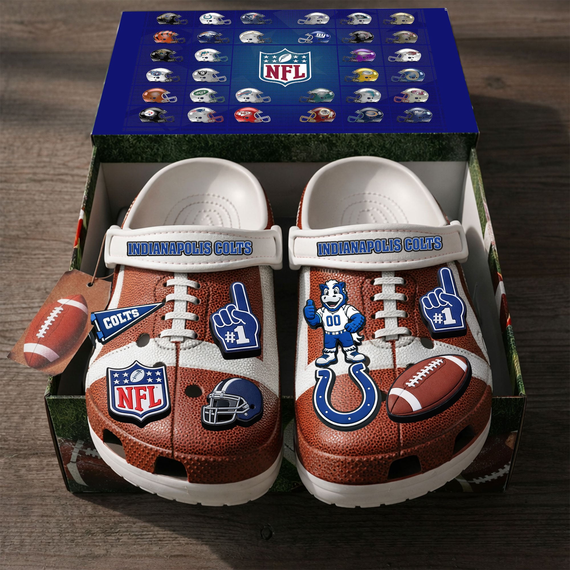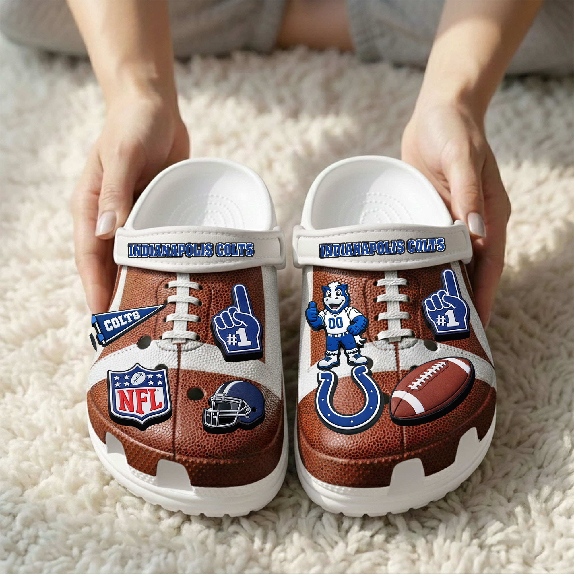 - This item: Indianapolis Colts | PREMIUM NFL CLOGS WITH CHARMS Original price was: $119.99.$74.99Current price is: $74.99.