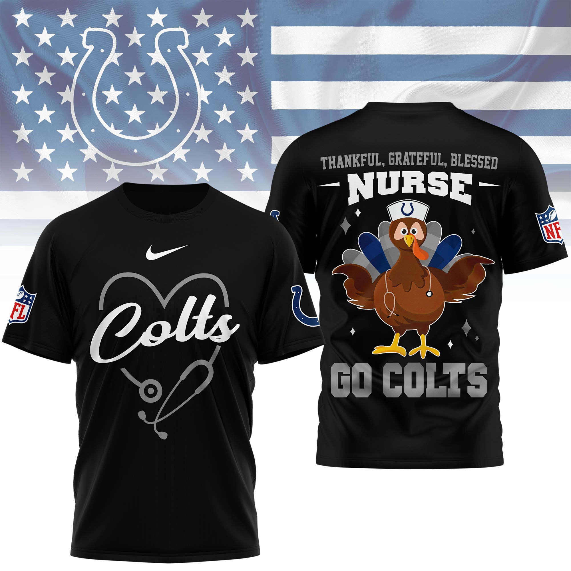 Indianapolis Colts | Premium NFL Thankful Nurse 3D Shirt