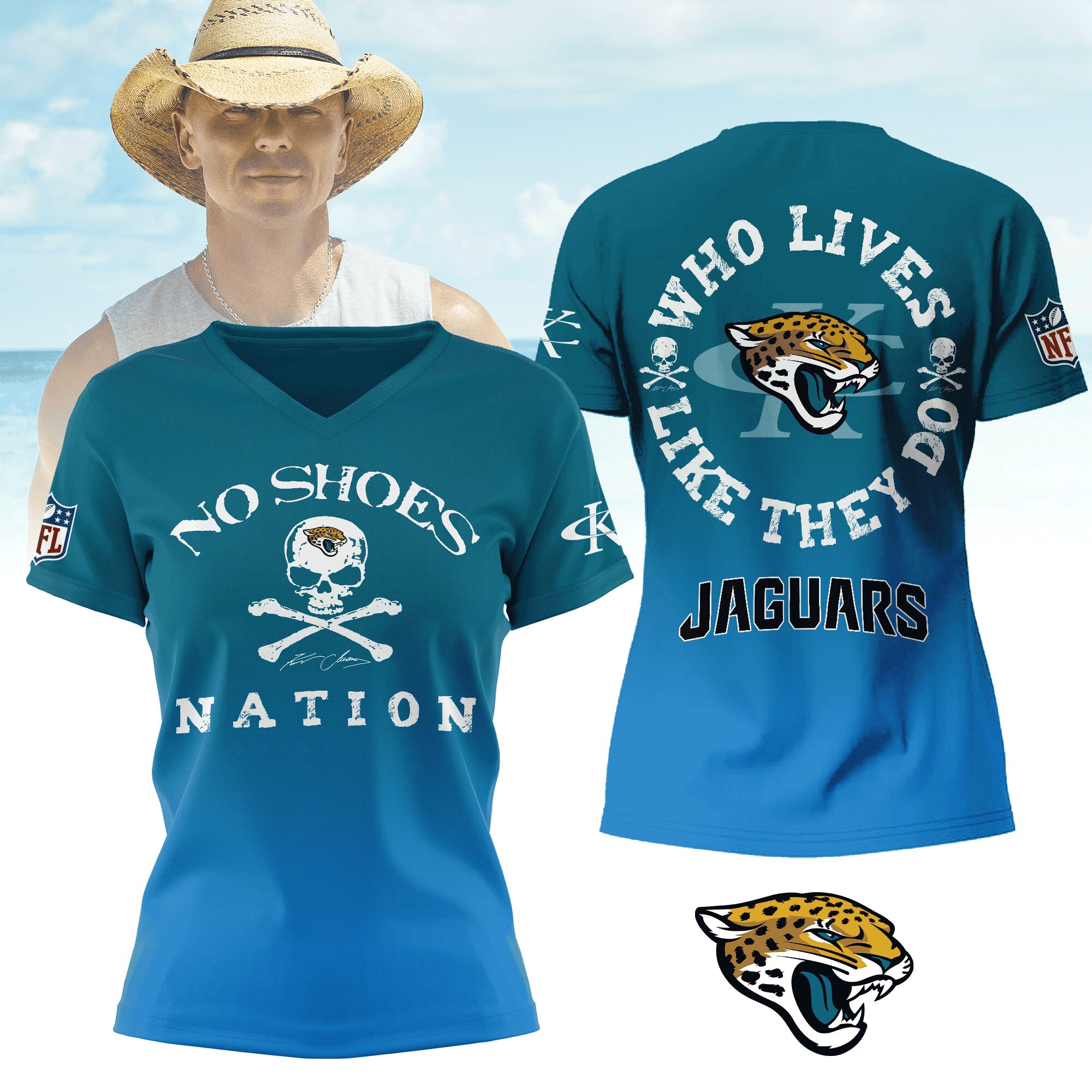 Jacksonville Jaguars | Premium NFL Kenny Chesney Who Lives Like They Do Shirt