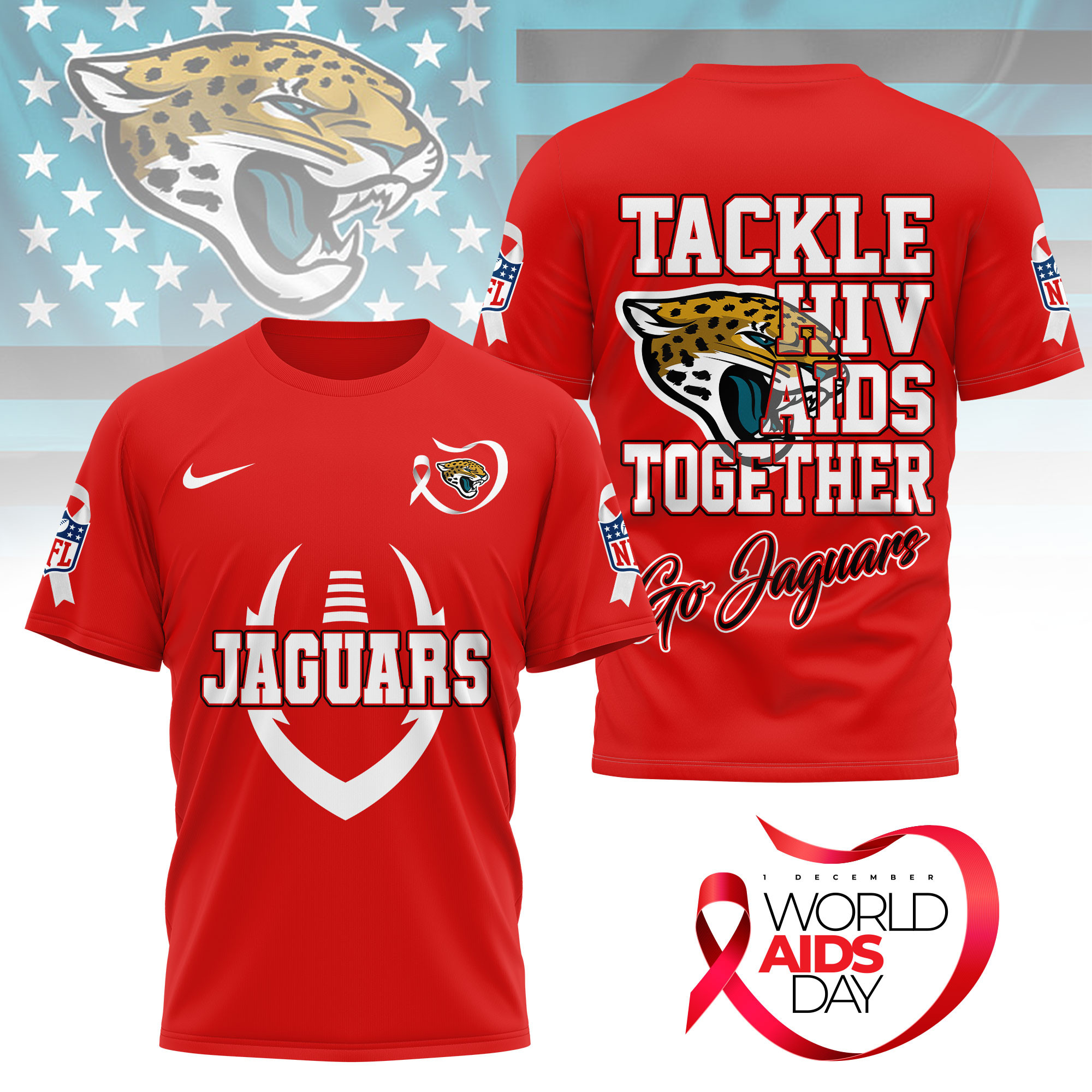 Jacksonville Jaguars | Premium NFL World AIDS Day 3D Shirt