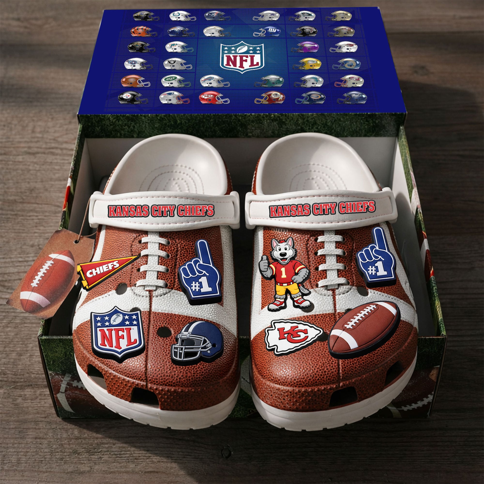 - This item: Kansas City Chiefs | PREMIUM NFL CLOGS WITH CHARMS Original price was: $119.99.$74.99Current price is: $74.99.
