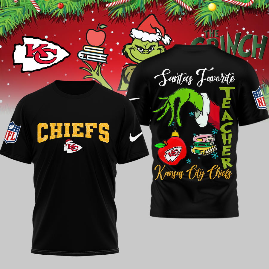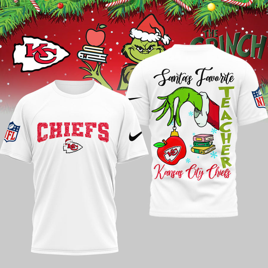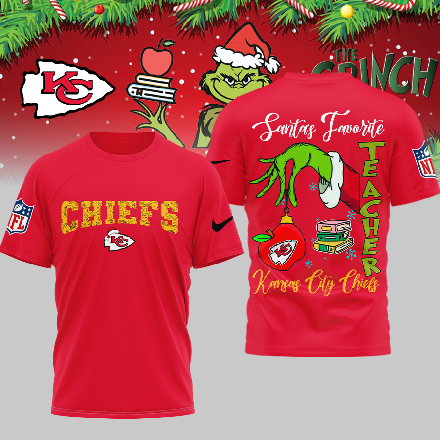 Kansas City Chiefs | Premium NFL Festive Grinch Teacher 3D Shirt