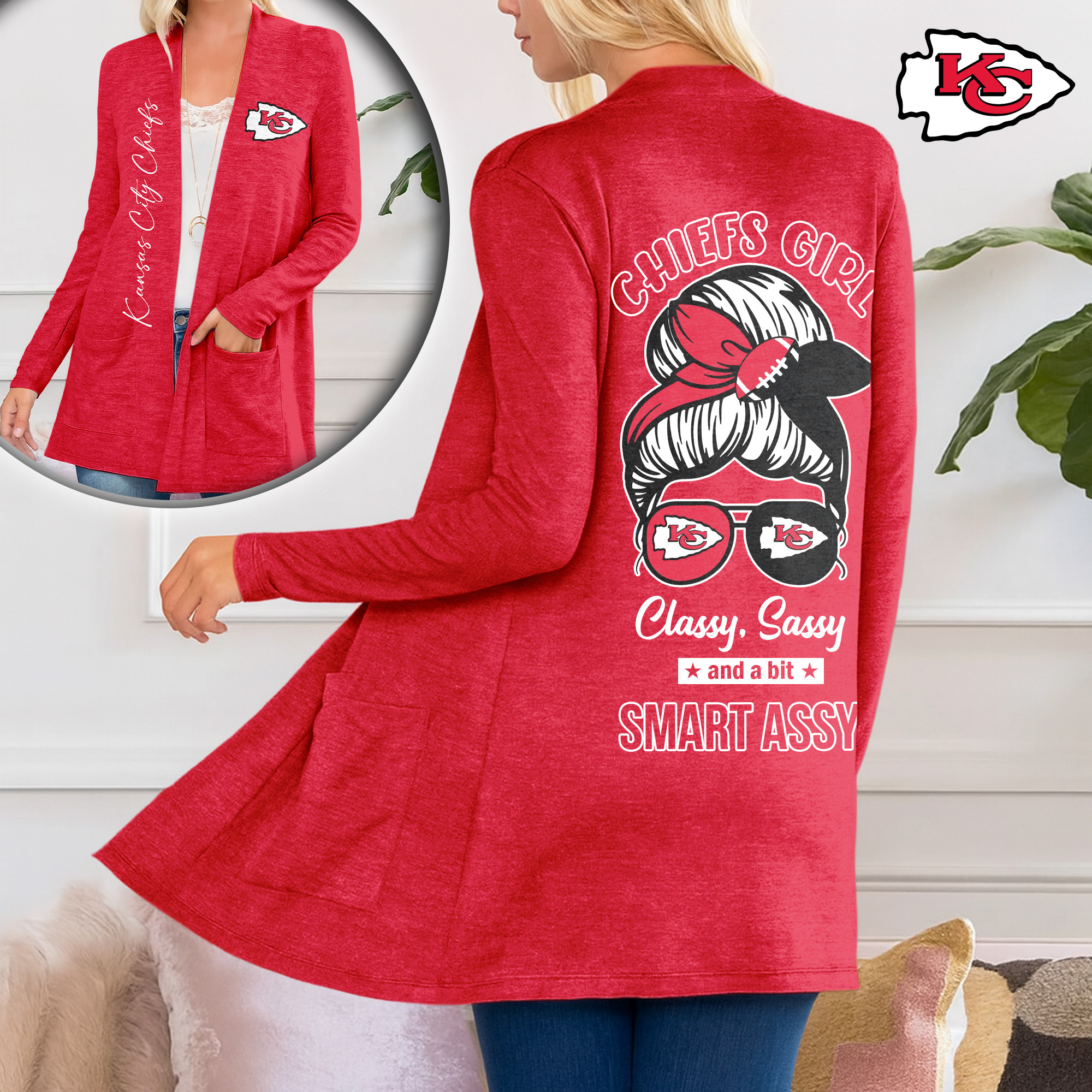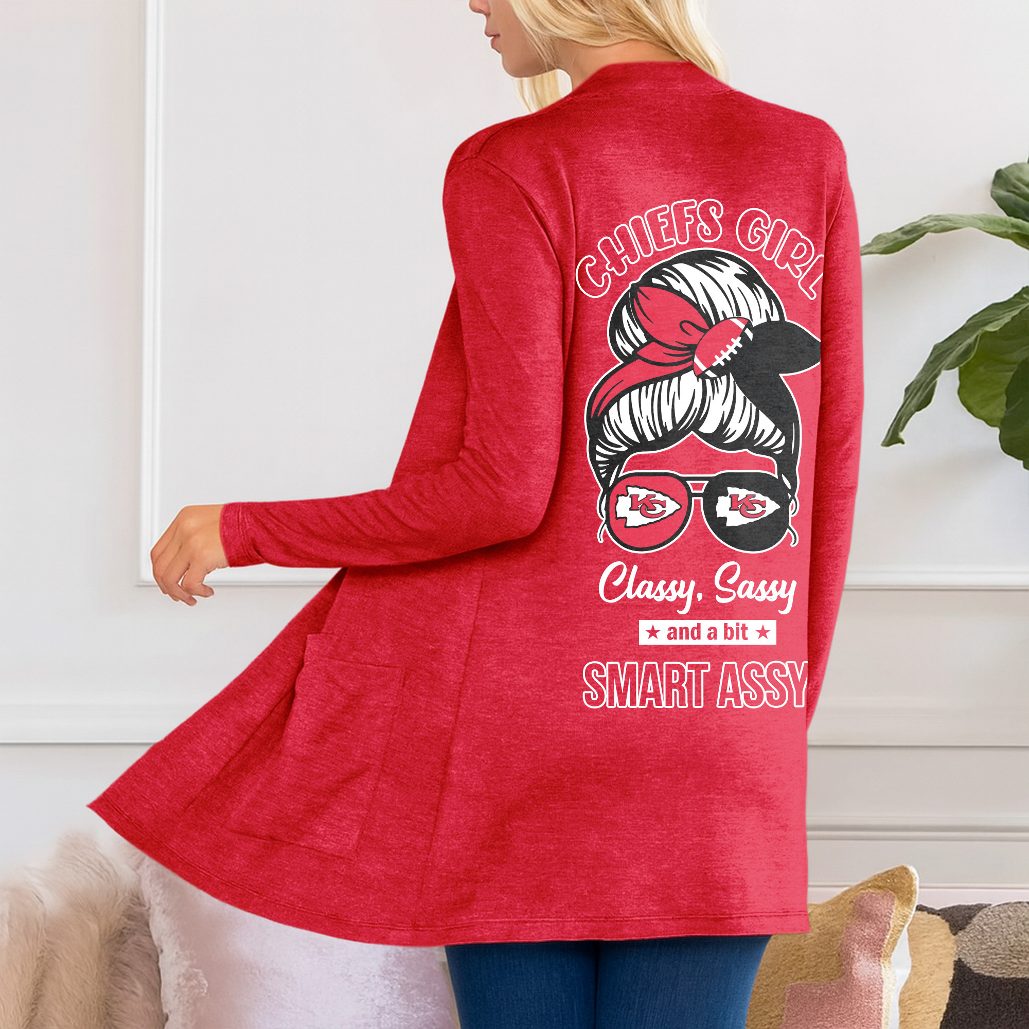 Kansas City Chiefs | Premium NFL Football Girl Women Path Pocket Cardigan