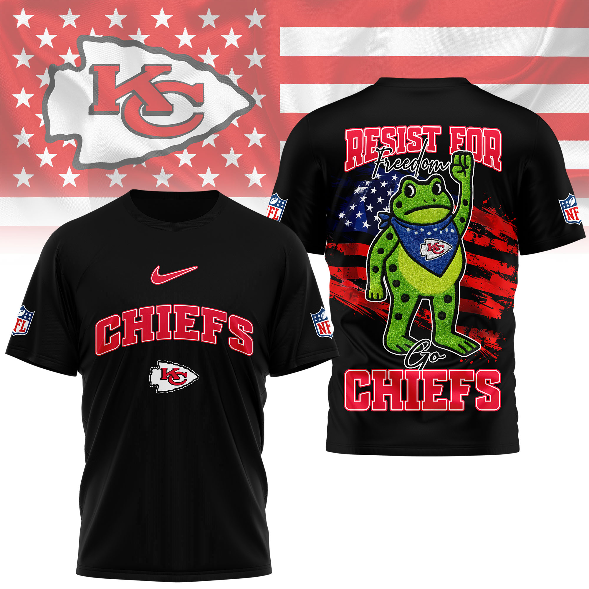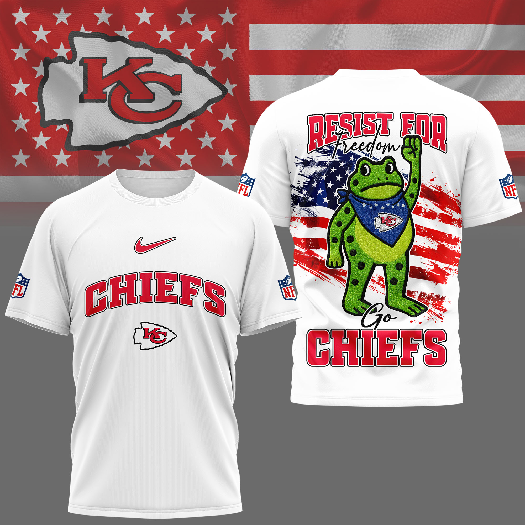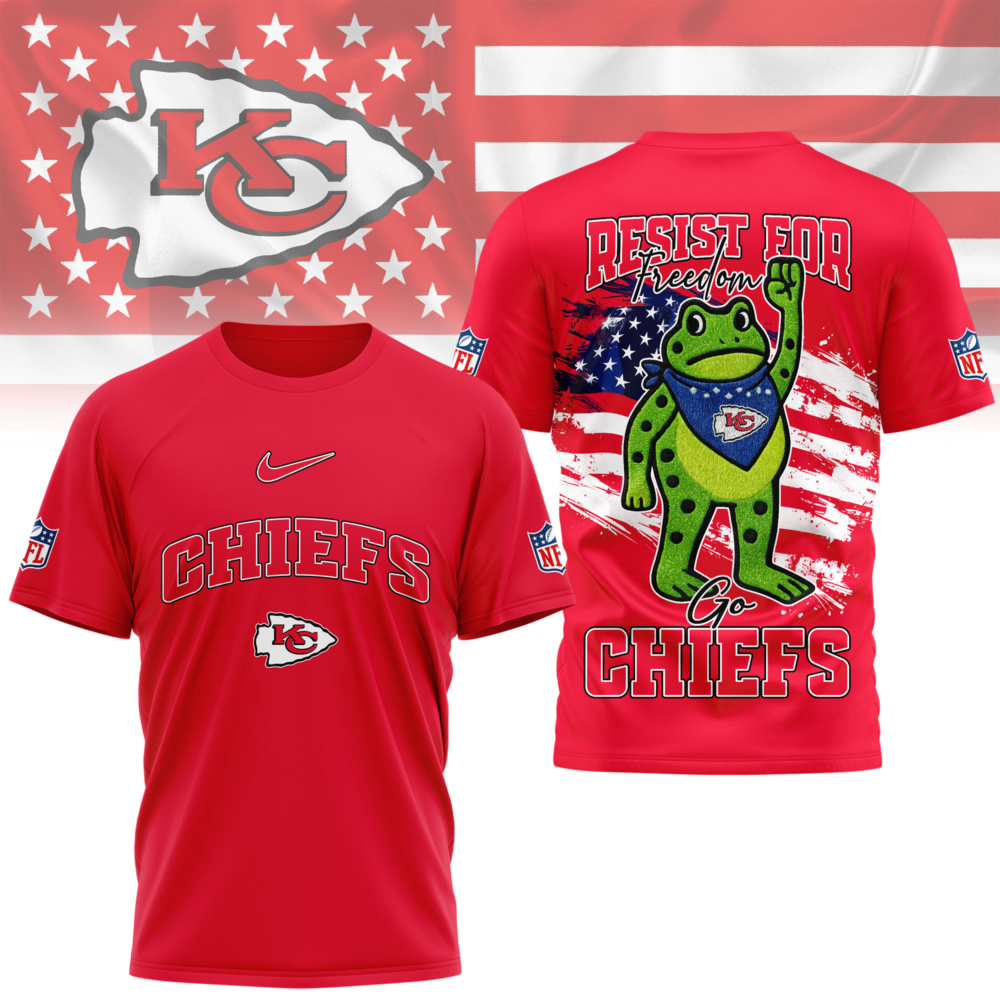 Kansas City Chiefs | Premium NFL Freedom Frog Fan 3D Shirt