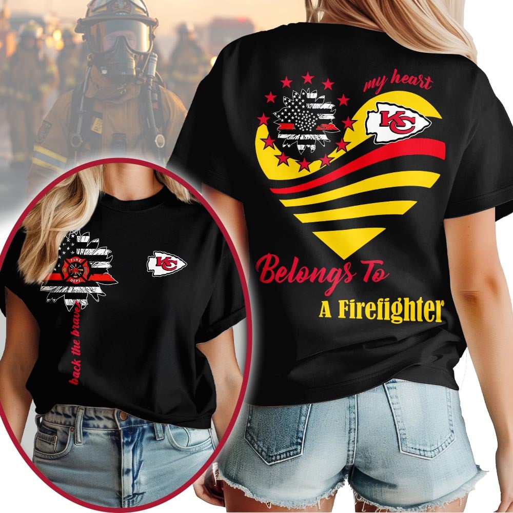 Kansas City Chiefs | Premium NFL My Heart Belongs To A Firefighter T-shirt
