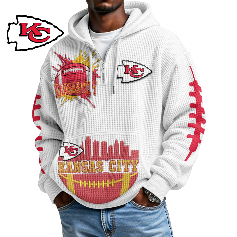 Kansas City Chiefs | Premium NFL Waffle Zipper Long Sleeve Hooded Sweatshirt